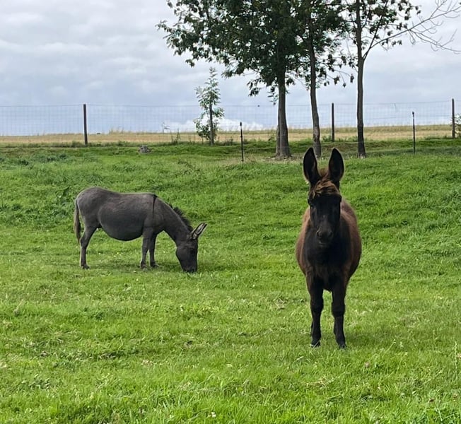 Verkaufe jungen Esel-Hengst – ideal für die Freizeitgestaltung! Wir bieten einen Mini Esel-Hengst, geboren im Jahr 2025, in dcer seltenen Farbe schwarz zum Verkauf an. Der schwarzbraune Nachwuchs überzeugt durch sein freundliches Wesen und sein charmantes Erscheinungsbild. Mit einem Stockmaß von ca. 75 cm ist er perfekt für den Einsatz in der Freizeit geeignet. Der kleine Hengst ist neugierig und verspielt . Er eignet sich für Familien, Einsteiger oder als Begleiter für Spaziergänge. Seine robuste Natur und sein angenehmer Charakter machen ihn zu einem zuverlässigen Partner. Leider müssen wir ihn abgeben da wir nur noch zwei trächtige Stuten haben und er somit alleine stehen müsste . Platz vor Preis :) Bei Interesse freuen wir uns auf Ihre Kontaktaufnahme!