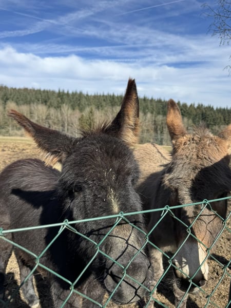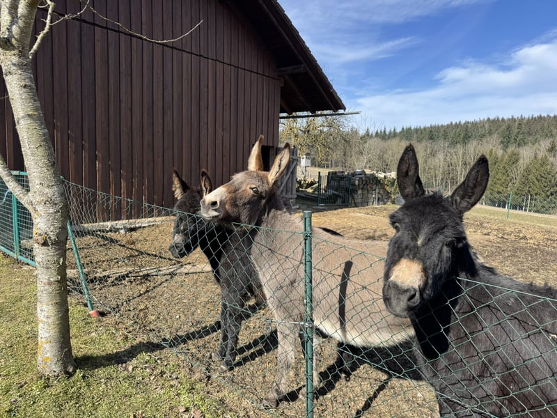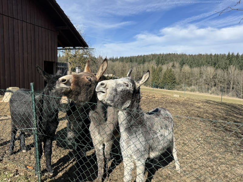 *Advertisement: 4 loving donkeys for sale - ideal for leisure time or as loyal companions**. Are you looking for a new family member or a sociable friend for your farm? Then you've come to the right place! We are offering our four donkeys for sale - either as a group or individually. **Details about our donkeys:** - **Age:** [11, 17,1,2] - **Possible uses:** Ideal for hikes, as companion animals or simply for cuddling. The donkeys are lovingly reared and have a friendly temperament. They are used to living in a herd and are good company for other animals and people. If you are interested or require further information, please do not hesitate to contact us by phone. We look forward to hearing from you and are always available to answer any questions! Give these wonderful animals a new home! ❤️