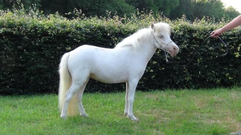 Elouise is een raszuivere Falabellamerrie met een heel lief karakter. Haar kleurbis vrij zeldzaam; cremello pinto. Dus een dubbele kleurverdunning en ook nog tobiana bont. Ze heeft een heel mooi hoofdje en is prachtig van type . Geregistreerd en DNA getest op ouderschap en ze is ook dwergen vrij getest. Haar dochter werd op de keuring in 2025 beloont met een eerste premie en lof voor haar sterke ruime beweging. Ze mocht met een tweede plaats ook deelnemen aan de kampioenschappen. We plaatsen haar alleen bij een goed tehuis met een ander paard of pony. Zie ook Rzadkiewa.nl