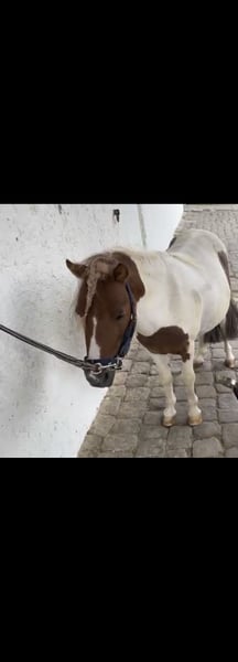 Prinz is an eight-year-old Falabella gelding with papers and a genetic test. He stands approximately 35 inches (89 cm) tall and is very friendly and approachable in everyday life. He is well-behaved in handling and suitable for children, although he still requires some guidance. Prinz is familiar with leading and being ridden, eager to learn, and gets along excellently with his herd mates. His size, temperament, and previous experience make him a good candidate for driving as well. However, he still needs some training, which can be easily achieved with patience and consistency. Due to a move to a larger pony, he is being offered for sale with a heavy heart. The price is negotiable, especially for a loving home, ideally in an open stable.