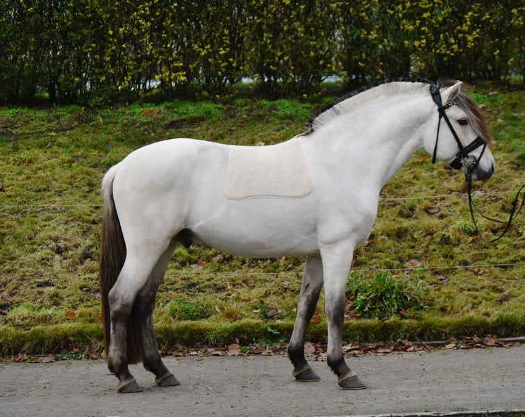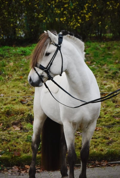 Zu Verkauf steht dieser 3-jährige, 148cm große gekörte Fjordhengst von Fjordbaekken‘s Sidan x Solbjor Borken in der besonderen Farbe Weißfalbe. Skorlan beeindruckt auf den ersten Blick mit seiner bildschönen Aufmachung und ausdrucksvollen Erscheinung. Er hat drei sehr gute Grundgangarten, für die er anlässlich der Körung Einzelnoten bis 9,0 erhalten konnte. Im täglichen Umgang und unter dem Sattel zeigt er sich sehr artig, gelassen und rittig. Er ist sicher angeritten und äußerst unerschrocken, sodass er mit Unterstützung auch für Kinder geeignet wäre. Er wurde bereits viel im Gelände geritten und zeigt sich auch hier mutig und gelassen. Es liegen gute Röntgenbilder vor. ‼️Bei Interesse und für Videos bitte ausschließlich telefonisch oder über WhatsApp unter 017621729218 melden. Anfragen über ebay oder ehorses werden nicht beantwortet.‼️ Das Pferd wird nicht zur Verfügung gestellt und kann auch nicht auf Raten gezahlt werden.