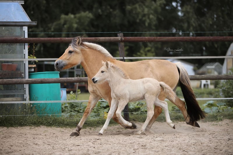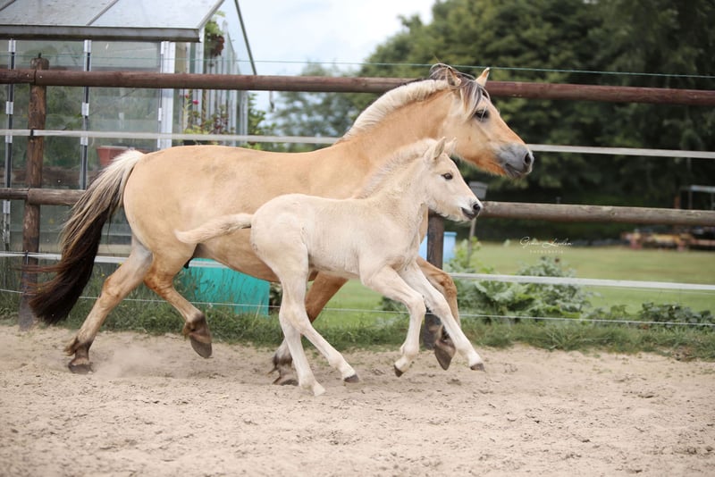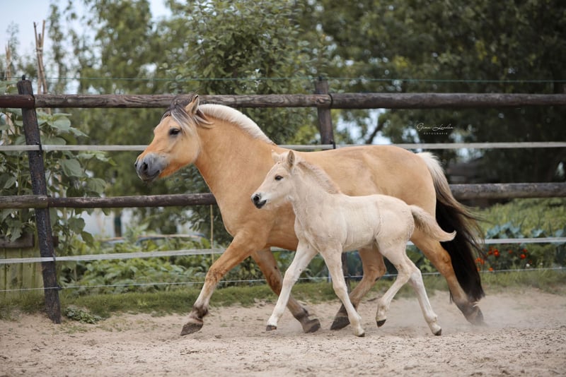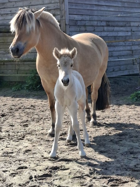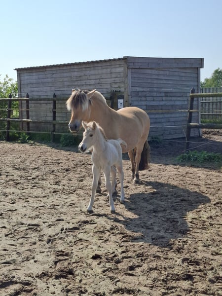 Wunderschöner roter Dun-Fohlenhengst zu verkaufen. Gut erzogen und gut gerittenes Fohlen. Hübsch markiert mit Zebrastrichen an allen vier Beinen. Aus einer hoch bewährten Blutlinie. Wiltred van Fjordenhouderij Het Compas ist ein Sohn des schönen, zugelassenen Hengstes Neral, der kürzlich nach Australien verkauft wurde. Er ist außerdem ein Enkel von Gio. Ein Vollbruder dieses Fohlens ist Uhtred van Fjordenhouderij Het Compas, der 2023 nach Frankreich verkauft wurde, mit der Absicht, ihn zur Zucht zu verwenden. Wir haben 2023 auch einen Hengst aus diesem Stallion gezogen: Uhral van Fjordenhouderij Het Compas. Auch dieser Hengst wurde verkauft und befindet sich in England, ebenfalls für die Zucht. Eine wundervolle Ergänzung für das Zuchtprogramm. Die Mutter stammt vom bewährten Hengst Topas ab (Vater der Mutter: Zortin). Eine wirklich schöne, alte Blutlinie. Da wir selbst keine Hengste halten können, bieten wir diesen schönen, korrekten Rodblakk für den passenden Platz an. Wir würden ihn gerne intakt behalten, mit dem Ziel, ihn zu einem wertvollen Zuchtpferd zu machen. Bei Fragen stehen wir Ihnen gerne zur Verfügung.