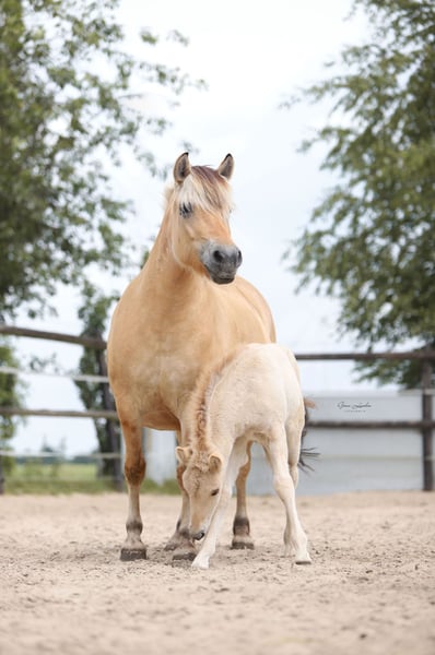 Beautiful red dun colt foal for sale.Well-behaved and driven foal. Beautifully marked with zebra stripes on all four legs. From a highly proven bloodline. Wiltred van Fjordenhouderij Het Compas is a son of the beautiful approved stallion Neral, who has just been sold to Australia. He is also a grandson of Gio. A full brother to this foal is Uhtred van Fjordenhouderij Het Compas, who was sold to France in 2023 with the intention of being used for breeding. We also bred a colt from this stallion in 2023: Uhral van Fjordenhouderij Het Compas. This colt has also been sold and is in England with the same purpose. A wonderful addition to the breeding program. The dam is by the proven stallion Topas (dam's sire Zortin). A truly beautiful, old bloodline. We are unable to keep stallions ourselves. We're offering this beautiful, correct, Rodblakk for the right home. We'd love to keep him intact, with the goal of making him a valuable addition to our breeding program. If you have any questions, please contact us.