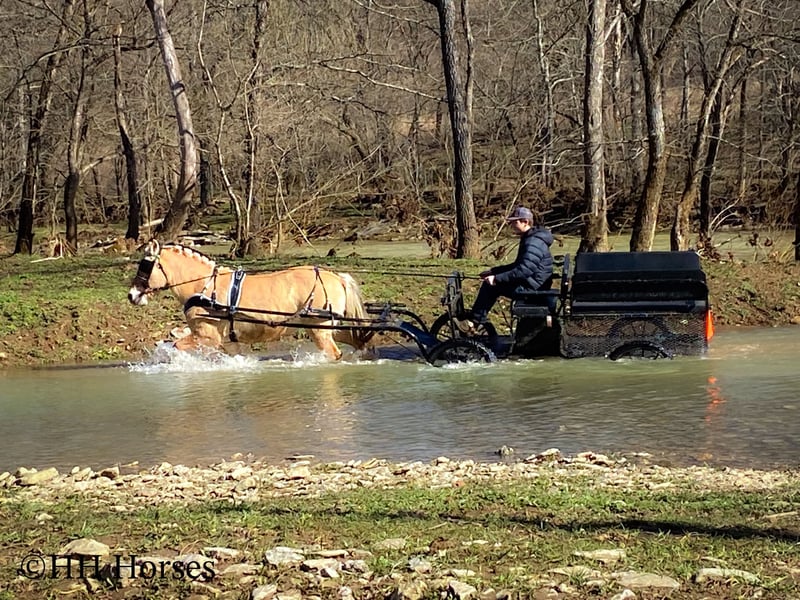 ONLINE AUCTION Place your bids at www.PlatinumEquineAuction.com Starting Bid $3500 Auction ends February 23rd, 2025 Need a new saddle? Check out White Rock Saddles on our website or Facebook! This is “COUCH POTATO”, a family friendly, quiet, safe, and gentle PUREBRED NORWEGIAN FJORD MARE that has all the great characteristics of the wonderful breed. She is 14.2 hands tall and 12 years old. The Fjords are one of the oldest and purest breeds in the world. This mare has great agility, a strong neck, sturdy legs, and excellent feet. She is broke to ride and drive. This mare has been ridden by beginners and youth riders. She will not take advantage of her rider. She will only go as fast as she is asked to and she is patient. She stands to harness, tack, mount, hitch, and groom. She loads, bathes, stands tied, and hauls with no fuss. She will trail ride anywhere you want to go quietly under saddle or harness. She will cross any depth of water and she is extra sure footed. She is cautious, kind, confident, and fun. She is safe for beginner teamsters and is uber user friendly to harness and drive. She is traffic safe and has been in holiday parades, wagons trains, and weekend camping trips. She has pulled a cart, sleigh, wagon, and farm machinery. She is broke nice and any level equestrian can appreciate how nice she is trained and how well she carries herself. She is a big comfy couch to ride, being extra smooth and keeping herself well balanced when maneuvering through rough, rocky, and steep terrain. She is a great horse for anyone to enjoy. Located in Flemingsburg, KY. For more info or to make a BUY IT NOW offer contact HH Horses Erin 304-238-4155. ONLINE AUCTION Place your bids at www.PlatinumEquineAuction.com Starting Bid $3500 Auction ends February 23rd, 2025 Need a new saddle? Check out White Rock Saddles on our website or Facebook!