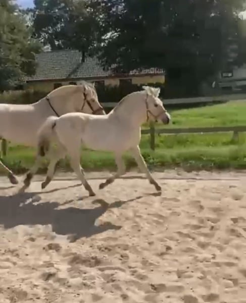 Three (4) Norwegian Forest Horses for sale. - Very attractive and sweet 6-year-old Norwegian mare with good pedigree (MOSEGÅRDENS HAUGE / GOLF GUDENÅ) and her 6-month-old filly are looking for a new home. Approximate height: 1.44 m. The mare is currently pregnant by the same stallion (DIRCH SKOVÅ). Accustomed to outdoor paddock keeping and compatible within the herd. Very people-oriented and friendly. She was ridden before her pregnancy. Price for the pregnant mare and foal together: €7,900 Pregnant mare alone: €5,900 Foal: €2,900 - Beautiful, friendly 1.5-year-old Norwegian gelding with papers. Sire: Model Skovå Dam: Malik Klattrup Very people-oriented and friendly. Compatible within the herd and raised in a mixed herd in an outdoor paddock environment. He has full papers and will reach approximately 1.45 m at full height. Price: €2,900 To be sold to a good home.
