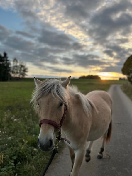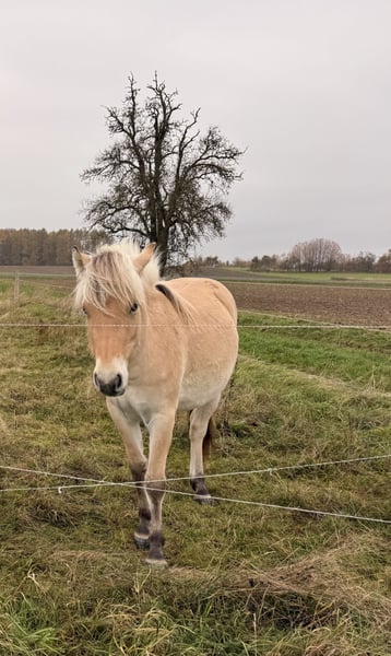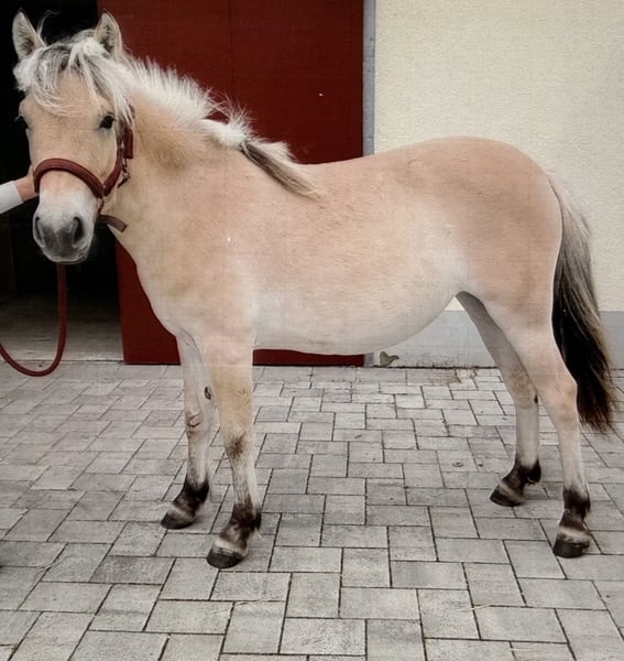 I am offering a promising, very people-oriented Fjord horse filly (born June 2024) with great potential for the future. She not only exhibits the characteristic appearance of the breed but also has a clear, friendly temperament. Curious, attentive, and eager to learn, she needs a fair and consistent handler who can provide her with security and gently but firmly support her development. Her basic training has already begun: groundwork has been introduced, she leads well haltered, and she is familiar with equi-sticks. She can be a bit restless at the farrier, but remains manageable. She is accustomed to different stabling conditions—both open stalls and box stalls are no problem for her. Additionally, she is regularly dewormed and vaccinated and has shown good compatibility with other horses, whether in her herd or in small groups. A particular highlight is her experience with loading: she has been loaded and transported multiple times, both alone and with other horses. These trips have been unhaltered so far, which she handles confidently and calmly. She also tends to be open and cooperative in new situations. She loves human contact, seeks closeness, enjoys being petted, and is very affectionate. One small issue remains: she is still unsure about spray bottles, but with patience, this can be trained easily. Overall, she is a wonderful young horse for people who enjoy working with young horses, prefer a calm and steady approach, and find joy in guiding a promising young horse on its path. If you are seriously interested, I look forward to hearing from you. Bailey has a green passport without pedigree. If I am unable to answer your call, I will get back to you promptly.