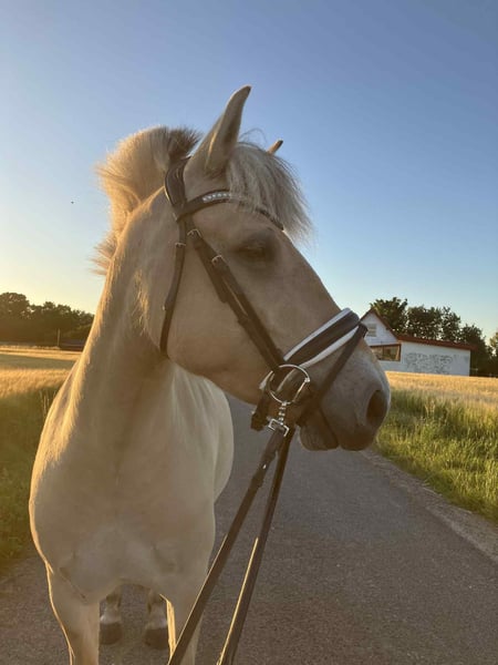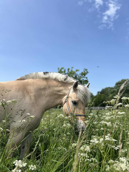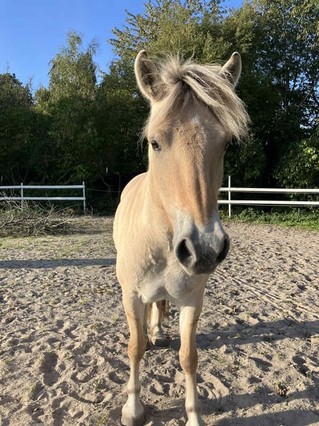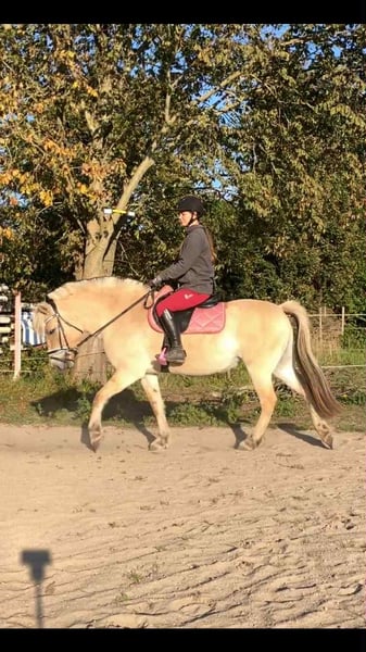 Oblings Natasja ist eine 3-jährige Fjordpferd-Stute mit vollständigem Pedigree. Sie hat Anfang Juni 2025 mit dem Reiten begonnen und macht sich hervorragend. Sie wurde sowohl von einem erfahrenen Reiter als auch von einer weniger erfahrenen 12-jährigen Reiterin geritten. Sie ist ein Pony, mit dem man nach einem langen Tag einfach eine entspannte Runde drehen und die Fahrt genießen kann. Da mein Reitplatz kleiner als üblich ist, habe ich nur Galopprunden im Gelände unternommen, was sie ebenfalls liebt. Sie ist das unkomplizierteste und lernwilligste Pferd, das ich je gekannt habe. Sobald sie vollständig ausgebildet ist, wird sie sich hervorragend als Kinderpony eignen. Derzeit springt sie im Freispringen 1 Meter hoch und zeigt großes Vermögen. Sie bewegt sich zudem so leicht, als würde sie auf einer Wolke schweben – mit Eleganz und Anmut. Sie liebt Streicheleinheiten und Küsse. Sie ist ein äußerst liebenswertes und anhängliches Pferd, was ihre Eignung für Kinder zusätzlich unterstreicht.