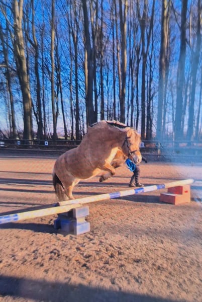 Fjordpferd 11 Jahre Wallach Ca 1,45 Manchmal muss leider der Kopf übers Herz entscheiden und ich muss mir eingestehen, dass wir nicht zusammen passen werden über lang hin weg gesehen.. Diego ist ein lieber Wallach, der das Herz am rechten Fleck hat... auch schmusen tut er gern♡ Außerdem ist er Bildschön und gut gebaut, aktuell müsste er aber noch etwas abnehmen. Beim Vorbesitzer wurde er Zweispännig gefahren. Leider wurde er mir damals als geritten verkauft, was sich leider schnell anders zeigte. Er lief den ganzen letzten Sommer brav mit mir in der Gruppe im Gelände, Mit Sattel oder Pad :) als wir ihn auf dem Platz arbeiten wollten stellte sich schnell heraus, dass er dort nichts kennt. Er geht aktuell in den Beritt, was er wirklich gut mit macht. Aber wenn er überfordert ist oder kein Bock mehr hat, neigt er dazu mal kurz zu Diskutieren (nichts tragisches, aber für mich leider nicht dauerhaft und kosequent umsetzbar da ich nun mal ängstlich bin durch alte Stürze aus der Vergangenheit). Zusätzlich fanden wir raus, dass er 10 Jahre lang Hengst war und deswegen bei anderen Pferden hin und wieder Hengstig reagiert, wenn ihm ein Pferd entgegen kommt im Gelände plustert er sich manchmal dann auf.. nicht immer! Nichts wildes wenn man mit sowas umgehen kann. Kinder kennt er und ist mit ihnen auch super vorsichtig. Hufschmied und Tierarzt macht er brav, sowie Anhänger fahren. Er ist kein Ekzemer, kennt Offenstall und Box. Wobei ich aufgrund des langen Hengst seins keine Garantie bei Stuten geben kann (hat hier eine Stute anfangs bestiegen und stand dann aber lieb mit ihr zusammen trotz Rosse...) Er ist ranghoch in der Herde aber nicht bösartig. Aktuell ist er bester Freund vom Ranghöchsten Opi Pony.. Pass und Abstammung hat er Ich suche für ihn einen Menschen der ihm die Sicherheit geben kann und Lust hat mit ihm zu arbeiten, weiter bilden.. Er hat es wirklich verdient und hat ein Herz aus Gold. Der Beweis ist das mich tragen im Gelände ohne irgendeine Ausbildung. Ich trenne mich weil ich aus mir heraus nicht raus komme und daran wachsen kann Vorstellen könnte ich mir für ihn eine taffe junge Frau oder Mann der/die Spass hat sich diesen liebevollen Kerl zurecht zu schleifen, er ist nicht verkehrt das betone ich nochmal ich bin verkehrt für ihn! Achso er kommt aus theoretisch 2ter Hand seine Lebensgeschichte ist nach Recherchiert also kein verbrauchtes unbeschriebens Blatt! Über Zubehör könnte man ggf sprechen Es gäbe einen Massimo Sattel VSS der ihm passt (600€) Aufpreis falls Interesse bestünde Keine Ratenzahlung Kein zur Verfügung stellen Bitte nur ernstgemeinte Anfragen :)