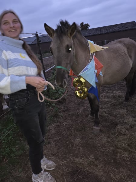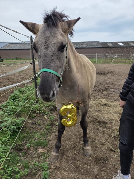 💔 Mijn lieve vriendje zoekt een nieuw gouden huisje ❤️ Met pijn in het hart gaat mijn lieve Fjord x Konik ruin in de verkoop — helaas blijft hij te klein voor ons. 🐴 Over hem: Deze bijzondere kruising (vader Fjord, moeder Konik) is niet alleen prachtig om te zien, maar ook een echte lieverd in de omgang. Hij is licht zadelmak en met tijd, geduld en vertrouwen gaat hij écht door het vuur voor je. 💫 Hij heeft een verleden, dus vraagt een rustige en consequente aanpak — maar hij beloont dat met zijn zachte karakter en trouw. Met wat meer doorrijden zou hij een geweldige kinderpony kunnen worden! 📏 Leeftijd: net 3 jaar 📏 Hoogte: ongeveer 1.33 m (zal nog iets groeien) 🔹 Reden van verkoop: helaas blijft hij voor ons te klein 🔹 Een unieke kruising die je niet vaak tegenkomt! 💖 Hij verdient iemand die met hem verder wil groeien — wie geeft deze bijzondere jongen een liefdevol thuis?