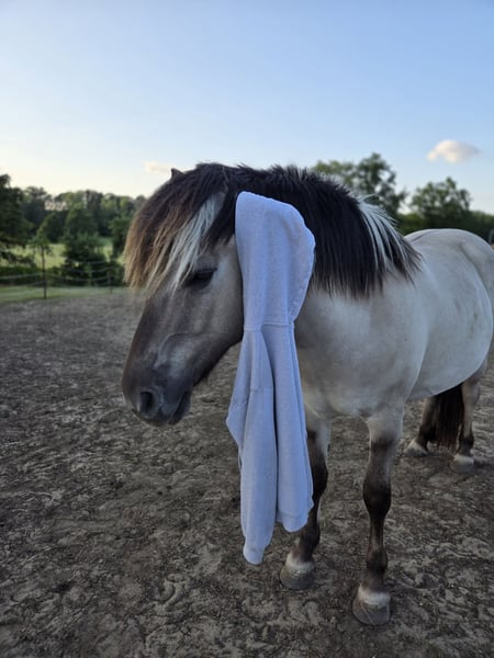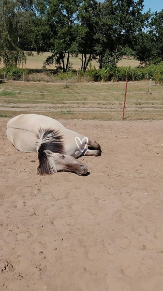 With a heavy heart, we must part ways with our Fjord gelding Masou. This decision was not easy for us, but due to personal reasons, we are closing our private horsekeeping entirely. We purchased Masou directly from the breeder as a foal. He initially spent two years on the breeding pasture and has been with us ever since, becoming a loyal, personable young horse who has grown close to our family. About Masou: Born: May 7, 2022 Current height: approximately 14.7 hh Color: Gray dun Breed: Norwegian / Fjord horse Breeder: Burkhard & Katharina Neuß GbR (fjordhof-neuss.de) Sire: Premium stallion Marlon (DE443435201811) Character & Daily Routine: Masou is very gentle, affectionate, and curious. Like many ponies, he can sometimes show a bit of stubbornness. He received nearly two months of training, during which the following was worked on: - Liberty work (leading, following) - "Falling Leaves" – hand changes at the longe line - Desensitization training: tarps, mats, flutter tapes, wippies, step stool, rattling bag - Lunging on both reins in walk, trot, canter, stopping, changing directions, over poles, with variable distances - Double longe and classical groundwork in walk - Saddling and standing calmly during mounting - Leaving the paddock With appropriate training, Masou, like our other horse Minero, can develop into a reliable leisure and trail riding partner. Health & Care: - Regular tetanus and influenza vaccinations (next tetanus shot due January 2026) - Dewormed every three months (most recently on November 30, 2025) - Open stable management with sand paddock and 24/7 hay supply (we have recently introduced grazing breaks, as he has gained some weight due to limited movement) - He is in excellent health! He also shows no bad habits, is always cooperative with the farrier and veterinarian, and loads calmly into a trailer. Special Requests / Wishes: We are looking for a loving home, not for sale to dealers or riding schools. It would be wonderful if we could visit Masou occasionally, as he is a part of our family. Masou is a kind-hearted young Fjord gelding, ideal for owners who wish to continue his development into a dependable leisure and trail riding horse. If interested, we would be happy to receive a brief introduction, preferably via WhatsApp: 015224402128.