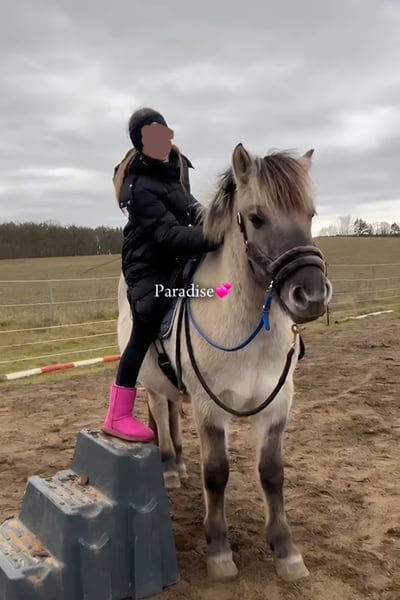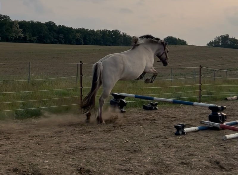 Schweren Herzens müssen wir uns von unserem Fjordwallach Masou trennen. Dieser Schritt fällt uns nicht leicht, doch aus persönlichen Gründen geben wir unsere private Pferdehaltung komplett auf. Masou haben wir direkt als Fohlen beim Züchter gekauft. Er stand zunächst zwei Jahre auf der Aufzuchtweide und kam danach zu uns, seither begleitet er unsere Familie und hat sich zu einem treuen, menschenbezogenen jungen Pferd entwickelt. Über Masou: Geboren: 07.05.2022 Stockmaß aktuell: ca. 1,47 m Farbe: Graufalbe Rasse: Norweger / Fjordpferd Züchter: Burkhard & Katharina Neuß GbR (fjordhof-neuss.de) Vater: Prämienhengst Marlon (DE443435201811) Charakter & Alltag: Masou ist sehr lieb, menschenbezogen und neugierig. Typisch Pony kann er manchmal einen kleinen Dickkopf zeigen. Er wurde für knapp zwei Monate im Beritt ausgebildet wo folgendes geübt wurde: Freiarbeit (Wegschicken, Folgen) „Falling Leaves“ – Handwechsel am Bodenseil Gelassenheitstraining: Planen, Matratzen, Flatterbänder, Wippe, Podest, Raschelsack Longieren auf beiden Händen im Schritt, Trab, Galopp, Anhalten, Richtungswechsel, über Stangen, Abstände variabel Doppellonge & klassische Handarbeit im Schritt Aufsatteln & ruhiges Stehen beim Aufsteigen Verlassen des Hofes Mit entsprechendem Training kann aus Masou, wie bei unserem anderen Pferd Minero, ein verlässliches Freizeit- und Geländepferd werden. Gesundheit & Pflege: Regelmäßige Tetanus- und Influenza-Impfungen (nächste Tetanus-Impfung im Januar 2026) Entwurmung alle drei Monate (zuletzt am 30.11.2025) Offenstallhaltung mit Sandpaddock und 24/7 Heu (seit vier Wochen bauen wir Fresspausen ein, da er durch die wenige Bewegung etwas kräftig geworden ist). Er ist kerngesund! Er zeigt ebenfalls keinerlei Unarten, ist immer kooperativ beim Schmied und Tierarzt und geht auch in den Anhänger. Besonderheiten / Wünsche: Wir suchen ein liebevolles Zuhause, kein Verkauf an Händler oder Reitschulen. Es wäre schön, wenn wir Masou gelegentlich besuchen dürfen, da er ein Teil unserer Familie ist. Masou ist ein herzensguter junger Fjordwallach, ideal für Menschen, die ihn weiter fördern und zu einem zuverlässigen Freizeit- und Geländepferd ausbilden möchten. Bei Interesse freuen wir uns über eine kurze Vorstellung, gerne auch über WhatsApp: 015224402128.