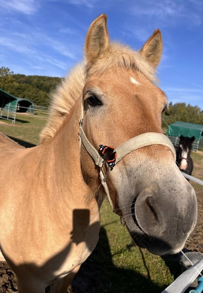 Fjordpony Simba – Bildhübsches Charakterpferd mit Potenzial sucht passenden Menschen Name: Simba Alter: 4 Jahre Stockmaß: Ponymaß ca 140 Rasse: Fjordpony, polnische Abstammung Ausbildung: Ging bereits im Schulunterricht und im Gelände, kennt Grundlagen Wir suchen für unseren 4-jährigen Fjordwallach Simba ein neues, erfahrenes Zuhause. Simba ist kein Anfängerpony und kein typischer Mitläufer – er braucht eine klare Bezugsperson, die konsequent, fair und pferdeerfahren ist. Er ist intelligent, neugierig und zeigt viel Potenzial – aber er testet auch gern mal seine Grenzen. Ins Gelände reiten kennt er auch, ist hier auch sehr mutig, aber seines Alters entsprechend am besten mit einem erfahrenem Pferd zusammen. Wir glauben sehr daran, dass Simba ein tolles Freizeitpferd wird, allerdings ist so ein junges Pferd mit seinem Charakter und den wechselnden Reitern für unsere Reitkinder im Verein nicht das Passende. Umso mehr wünschen wir uns für ihn ein Zuhause, wo er weiterhin gefördert und vielseitig gefordert wird! Bei ernsthaftem Interesse gern eine WhatsApp an folgende Telefonnummer: 017664424046. Alles weitere wird dann telefonisch geklärt.