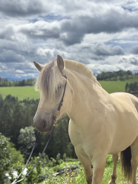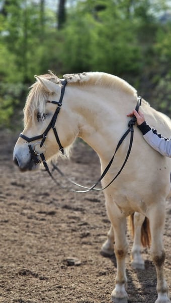 Laurin is a approximately 143 cm tall 5-year-old Fjord horse with a white coat. He was born in 2020 and has been living in our species-appropriate herd since then. In the herd, he is rather dominant. Laurin has been in training for a year now. We started groundwork earlier, so he knows the basics. When riding, he is well-behaved and shows good gaits. He is very sure-footed and loves to go on long, relaxed trail rides. We are not yet as advanced in the riding arena, but he is still in training and is developing every day. Due to his age, he is not suitable for beginners. He is very kind, even with children, and loves to cuddle with them. Laurin needs a consistent but loving and patient owner who spends a lot of time with him regularly. Laurin is a very people-oriented and affectionate horse who enjoys closeness. He is also very well-behaved with the farrier, but he has never been shod as he has good hooves. There have never been any problems with trailer loading either. Laurin can be viewed and tried out for riding by appointment. We are also happy to send current videos upon serious interest. Please feel free to contact us for more information.