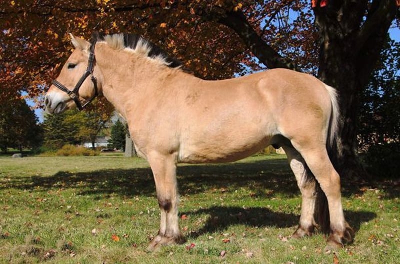 Hi my name is Oliver! I am a 5 year old Norwegian Fjord gelding, standing a sturdy 14hh. I am extremely loving, determined, fun, and courageous. Now it’s time for me to tell you what I can do! I have no limits, from trails to jumping and even driving I can do it all. I’m an all weather kind of guy, take me out in the deepest snow, the cold has never bothered me. Or take me out on a warm summer day, I’m happy either way. I will stand all day to be groomed, loved on, saddled, bridled, clipped, ect. I love people and attention. I get along well with all of my other horse buddies as well. I’m an easy keeper. I have 3 beautiful gaits, a quiet walk, a smooth trot, and a balanced canter. I know my leads and I have great transitions. I have spent many hours trail riding in the woods. I’m not bothered by anything. Trail blazing, wildlife, steep hills, bikes, traffic; I’m ok with all of it. My family has had me out on many camping trips and I love adventures! I have also been ridden in the arena and I know basic dressage movements. I love to jump and have been told I’m very cute. I keep a steady canter around a course and I’m not one to shy from anything. I have been to several events and have given many hand led pony rides!! In harness I have been driven single, double and even in a 4 horse hitch. I’ve been down the road and into town and everyone stops to tell me how cute I am. My ideal home would be a family to love me and use me out on the trails or in the arena. I’m a confident and loving guy!