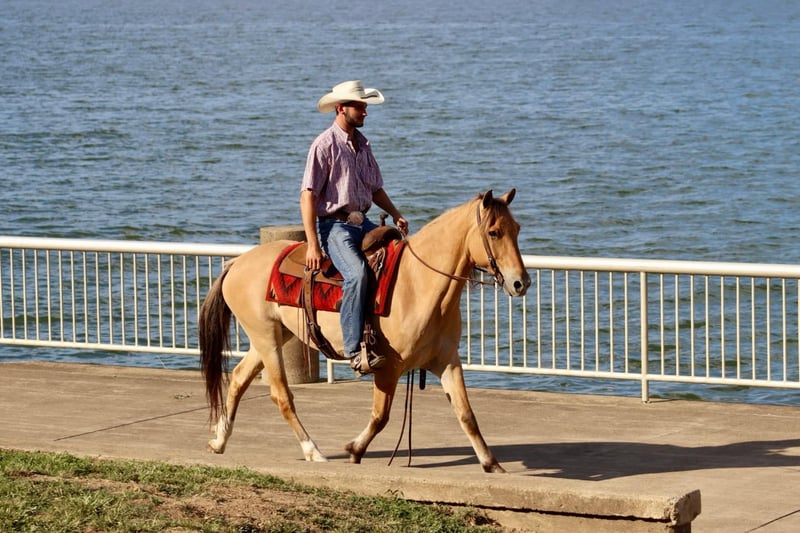 ONLINE AUCTION Place your bids at www.PlatinumEquineAuction.com Starting Bid $3500 Auction ends October 6th, 2024 Need a new saddle? Check out White Rock Saddles on our website or Facebook! Elmer is a unique 15.2 hand Fjord/QH cross gelding. He is 6 years old and as cool as they come! He walks, jogs, and lopes nicely in the arena and outside. He has countless hours of experience on a large cattle ranch in MS. He was the owner’s main mount. He will neck rein, side pass, open and close gaits, and of course do necessary work with the cows from doctoring to loading trucks. You can ride him bridleless, he has a nice handle, and is a joy to have in the barn. He is quiet and gentle and rides the same everyday. He is also excellent on the trails. He crosses natural obstacles with ease including water, bridges, banks, and logs. We have ridden Elmer in town and is traffic safe including motorcycles, scooters, and baby strollers. He loves people walking up and petting him too. He stands well for the farrier and vet. Everywhere we take him, Elmer catches the attention of others for his handsome looks and cool demeanor. Don’t miss out on a great, young gelding like him! Call Sammi Waugh 704-798-5497 Located in Brooksville, KY. ONLINE AUCTION Place your bids at www.PlatinumEquineAuction.com Starting Bid $3500 Auction ends October 6th, 2024 Need a new saddle? Check out White Rock Saddles on our website or Facebook!