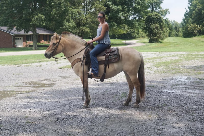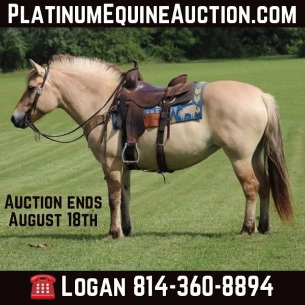 ONLINE AUCTION Place your bids at www.PlatinumEquineAuction.com Starting Bid $3500 Auction ends August 18th, 2024 Need a new saddle? Check out White Rock Saddles on our website or Facebook! Azora is my 7 year old registered Fjord. Azora is standing at 14.1hh. She has been with me for a couple of years. She was just currently my dad’s trail mount who is an absolute beginner. Azora will take care of anyone you put on her back. My 6 year old brother has rode her all over the trails and our property! We have taken her in some parades and she did amazing. We have ponied small children off of her and given pony rides on her! She was in a small lesson program and has taught the basics to a lot of kids who are just starting out riding. Azora will stand at a mounting block and for you to tack her up! She loves to trail ride and will go all day long. We have taken her to several over night trail rides and she will tie out like a champ! Nothing phases her, walks through water, over logs, will lead or follow! Azora also loves the ring work! She will walk trot and canter both directions with ease! She’s easy to catch and wants to be in your pocket. She needs no maintenance at all. She is currently shod all the way around. Don’t miss out on my sweet Azora! Call Logan Smith 814-360-8894! Located In Rineyville Kentucky! ONLINE AUCTION Place your bids at www.PlatinumEquineAuction.com Starting Bid $3500 Auction ends August 18th, 2024 Need a new saddle? Check out White Rock Saddles on our website or Facebook!