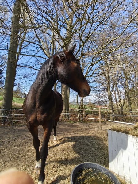 Ich inseriere nicht aus Langeweile, sondern weil ich im Sinne des Tieres ein neues Zuhause für ihn suche. Ich hab Mo vor drei Jahren in Holland gekauft und wollte ihn als Freizeitpferd und Kumpel für meine Stute haben. Leider passt es zwischen den Beiden nicht, da Mohawk natürlich viel Energie hat und sie nicht zur Ruhe kommt. Eine andere Sozialisierung kann ich ihm nicht anbieten, da wir an einem kleinen Stall stehen. Das bräuchte er aber dringend. Weiter bin ich kein richtiger Pferdeexperte und kann ihn nicht so trainieren wie er es bräuchte. Ich möchte das er all das bekommen kann und musste mir eingestehen, nicht die Führungsperson sein zu können, was ich aus gesundheitlichen Gründen leider nicht erlernen kann. Mo ist ein netter Wallach, der noch roh ist. Bei Fragen stehe ich gern zur Verfügung und ein Kennenlernen ist jederzeit möglich.
