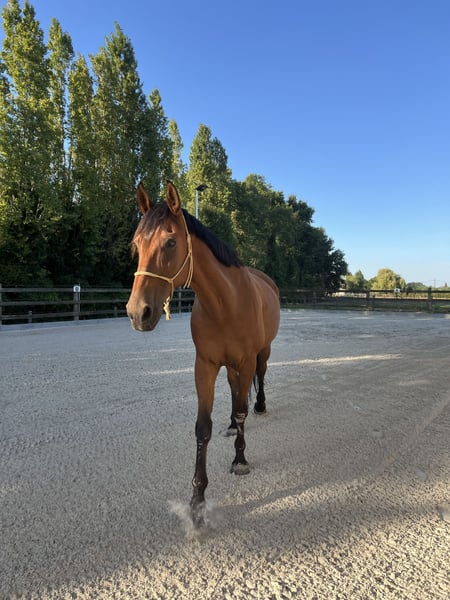 10-jähriger französischer Trabrennpferd. Er ist etwa 1,70 m groß und ein ansprechendes Erscheinungsbild. Im Umgang ist er brav und menschenbezogen. Allerdings gibt es medizinische Hinweise: – Leichte Ataxie – Leichte Kissing Spines Aus diesem Grund ist er nicht für den Sport oder intensive Belastungen geeignet. Möglicherweise passt er gut zu jemandem, der ein Pferd für leichte Freizeitreiten, Bodenarbeit, Freiheitsdressur, Spaziergänge an der Hand oder unter dem Sattel sucht, oder auch als Gesellschafts- oder Weidemann. Er ist bereits mit vielen Aspekten der Bodenarbeit und Freiheitsdressur vertraut und macht dies auch am liebsten. Er ist an den täglichen Kontakt gewöhnt und lässt sich leicht in die Hand nehmen. Wir suchen für ihn ein ehrliches, ruhiges und dauerhaftes Zuhause, bei dem sein Wohl an erster Stelle steht. Aufgrund der Kissing Spines ist eine 24/7-Unterbringung auf der Weide ausgeschlossen. Im Sommer ist er tagsüber in einer Herde draußen, im Winter nur nachts in der Box. 📍 Klinischer Befund bekannt und besprechtbar 🏡 Nur an ein 5-Sterne-Haus 💬 Preis und weitere Informationen nach Absprache ‼️ Anfragen nur zu Preis und Händlern werden nicht beantwortet! ‼️