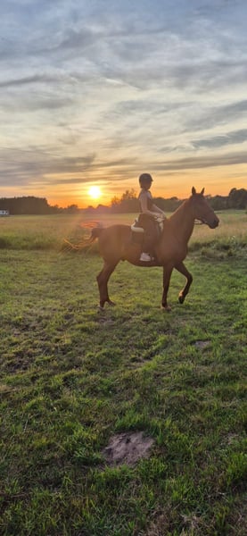 Na sprzedaż piękny wałach. Jest to koń do przodu, chodzi w tereny sam i jest to koń niepłochliwy, nie boi się psów, samochodów czy innych hodowlanych zwierząt. Jest bezkonfliktowy, grzeczny przy myciu, czyszczeniu i siodłaniu. Jest typem miśka i potrafi kilka sztuczek. Pracuje z ziemi na podstawach oraz skakał luzem. Pode mną skakał do 85 cm. Mogę sprzedać również pakę oraz sprzęt. Odpisuje na aplikacji jak i na SMS. Niska cena że względu na potrzebę szybkiej sprzedaży.