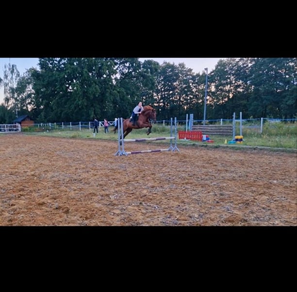 For sale is a beautiful gelding. He is a forward-going horse who is comfortable riding alone in the countryside. He is not spooky and does not fear dogs, cars, or other farm animals. He is conflict-free, well-behaved during grooming, cleaning, and saddling. He has a teddy bear temperament and can perform a few tricks. He works on the ground basics and has jumped freely. Under saddle, he has cleared heights up to 85 cm. I can also include the trailer and equipment in the sale. I respond to messages and SMS. The price is low due to the urgent need for a quick sale.