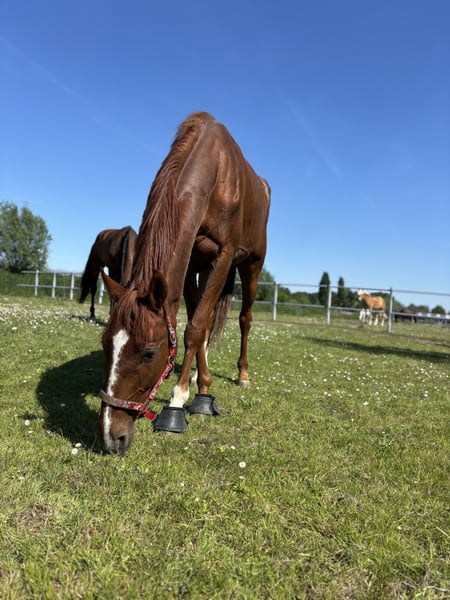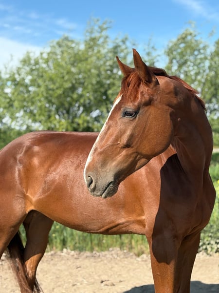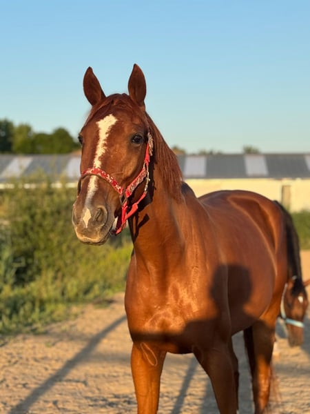 Mit großem Bedauern habe ich beschlossen, meinen 5-jährigen Rennbahn-Geländer Kairos zu verkaufen. Derzeit wird er dressurmäßig geritten, was er schnell aufnimmt. Es ist ein Pferd mit viel Temperament, daher ist er nicht für unsichere Reiter geeignet. An der Hand ist er unglaublich lieb. Setze deine Grenzen rechtzeitig und sei konsequent – er liebt klare Strukturen. Er befindet sich seit fast drei Jahren in meinem Besitz. Gekauft wurde er mit 2,5 Jahren, ich habe ihn selbst zäumend gemacht und weitergeritten. Er ist verkehrssicher und springt schön. Das war jedoch nie seine Priorität. Er kann normal galoppieren, hat die Dressurbahn aber noch nie gesehen. Er kann auch in einer Herde stehen. Wenn du mit diesem tollen, lernbereiten Pferd arbeiten möchtest, schick mir gerne eine Nachricht – wir freuen uns auf dich! Der Verkauf erfolgt inklusive aller Zubehörteile. Der Preis liegt bei 4.000 Euro, aber mir ist ein gutes Zuhause wichtiger.