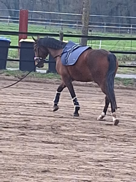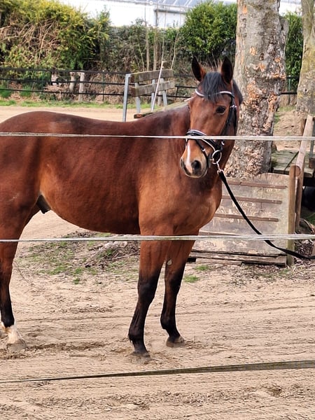 Zuverlässiger Freizeitpartner mit sehr guter Grundausbildung sucht Bestplatz Aufgrund der Dringlichkeit sehr faire Preisklasse. Zum Verkauf steht ein 12jähriger brauner Wallach, ca 1,60 m groß, aus gesundheitlichen Gründen meinerseits Ein zeitnaher Verkauf ist daher leider erforderlich. (Bitte keine weiteren Anfragen zur eine Verfügungstellung. Danke ) Der Wallach ist ein brav gerittenes, erfahrenes Freizeitpferd. Er ist leicht in der Hand und „hält brav das Köpfchen hin“ und eignet sich dadurch auch hervorragend für schwächere Reiter. ✔️Sehr gute Grundausbildung ✔️reagiert fein auf Schenkel- und Gewichtshilfen ✔️Lektionen wie Schenkelweichen, Kurzkehrt u. a. sicher abrufbar ✔️brav in der Abteilung, auch mit Hilfszügeln ✔️kennt Stangenarbeit (kein Springpferd) Er ist geländesicher in der Gruppe und war bereits in der Hauptsaison in Renesse sowie am Strand sicher unterwegs. Auch turniererfahren (Abgabe erfolgt als Freizeitpferd): ✔️Schleifengarant auf WBO-Turnieren ✔️“liefert zuverlässig ab“ Im Umgang unkompliziert: ✔️schmiede- und verladefromm ✔️läuft barhuf mit guter Hornqualität Videos sende ich bei seriösem Interesse gerne zu. Probereiten berechnen wir mit 25 €.Müssen vor dem reiten bezahlt werden. Ein ehrliches, gut ausgebildetes Pferd für Reiter, die einen verlässlichen Partner für den Freizeitbereich suchen.