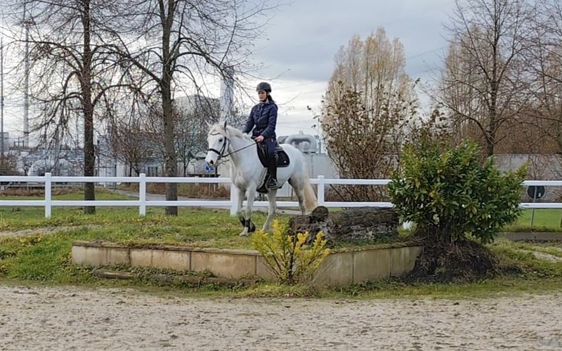 Sometimes difficult decisions have to be made. Unfortunately, the child and the pony are not the perfect match. We are selling on behalf of a very sweet French pony gelding. He is an absolute sweetheart. Whether riding with a saddle pad, hacking alone or in a group, lesson riding, or more – he has no issues with trailers, farriers, competitions, or busy environments. He also trailers perfectly. We have done a few cross-country jumps with him, which he really enjoys, whether uphill/downhill or solid natural jumps. Djo (Django du Boulouee), as he is affectionately called, is a 12-year-old gray gelding standing at 147 cm. He is already registered for advanced levels. He has been in Germany since around May; previously, he competed successfully up to L-level show jumping in France. Simply a wonderful and, above all, lovable pony. For inquiries, please call or WhatsApp 0176/84855229.