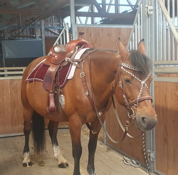 Zu verkaufen ist unsere 2009 geborene Freibergerstute Dunja. Dunja ist in der Schweiz geboren und hat einen Original Schweizer Equidenpass. Sie ist sowohl ein- als auch mehrspännig gefahren, wurde von uns aber meistens nur geritten. Ins Gelände geht sie meistens in der Gruppe, wenn geübt aber auch alleine. Sie ist nicht für Anfänger und auch nicht für den Schulbetrieb geeignet. Allerdings könnten wir uns Dunja bei einer/-m erfahrenen Reiter/-in mit eventuell 1-2 Reitbeteiligungen vorstellen. Dunja ist schmiede- und verladefromm und wurde von uns häufig auf Prozessionsritten und im Gelände geritten. Das Jahr über trägt sie vorne Hufeisen, im Winter ist sie Barfuß. Sie steht das ganze Jahr tagsüber auf der Weide und nachts im Stall. Bei weiteren Fragen stehen wir Ihnen gerne zur Verfügung.