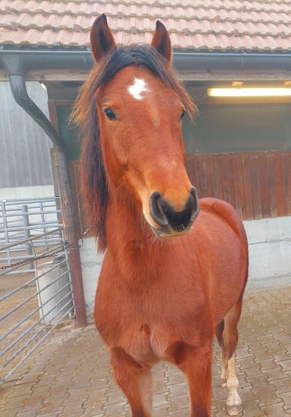 Chaya est née en avril 2024. Elle est parfaitement manipulable en licol et connaît le maréchal-ferrant. Chaya grandit dans un troupeau mixte composé d’animaux âgés de 1,5 à 30 ans. Elle connaît les enfants, les vaches, les chiens, ainsi que les machines agricoles. Très curieuse, elle souhaite désormais relever de nouveaux défis. Sa mère, mesurant environ 1,55 m, est plutôt petite, et Chaya ne devrait probablement pas devenir beaucoup plus grande. Elle partage avec une autre jument de 1,5 an un grand box avec paddock, et passe ses journées avec le groupe en paddock ou en pâture.
