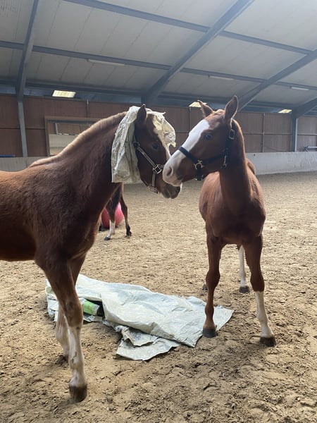 Naar ons Freyja genoemd, de Fastnacht de la Raviére. Ik bied hier mijn jonge Freiberger merrie te koop aan. Ze is geboren in februari 2023 en kwam in oktober 2023 samen met vier andere jaargangers uit Zwitserland bij ons op de manege. Sindsdien is ze opgegroeid in een gemengde kudde, wat haar zeer sociaal en evenwichtig maakt. Vanaf veulen af hebben onze jonge paarden steeds nieuwe dingen leren kennen, zodat ze later vol vertrouwen en kalm door de wereld kunnen gaan. Freyja toont zich in de dagelijkse omgang uiterst vriendelijk, nieuwsgierig en makkelijk in de omgang. Ze is al aangeleund, heeft met plezier verschillende soorten uitrusting gedragen (beenbeschermers, zadel, longeergordel, bit, etc.), kent rusttraining en gaat ontzettend graag in de longeerbak. Ook bij de hoefsmid gedraagt ze zich als een grote. Ze werd op de veulenschouw in Zwitserland beoordeeld met: 7/7/8. Een paard met een goed fundament, een heldere geest en veel potentieel voor de toekomst – of het nu voor recreatie, buitenritten, fokkerij, western of later in de sport is. Geschat eindmaat: 1,60 m.