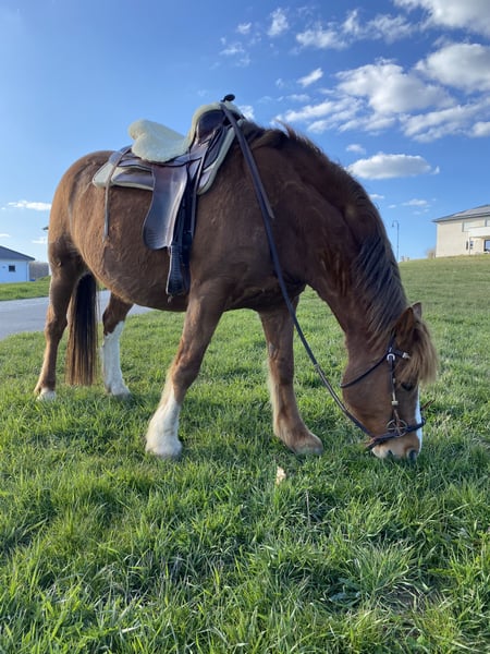 Ben je op zoek naar een ontzettend lief en goed gereden vrijetijdspaardje? Misschien is Sam wel de perfecte paardenvriend voor jou. Hij wordt compleet geleverd met passend westernmateriaal. Over Sam: Hij is 15 jaar oud, 1,56 m hoog en heeft uitstekende hoeven, daarom is hij een hoefbevangen paard zonder hoefijzers. Sam is kerngezond, lief en makkelijk in de omgang. Hij wordt western gereden en bitloos met een hackamore, maar kent ook het bit. Als voormalig trekpaard is hij absoluut betrouwbaar op de benen. Hij kent grondwerk, cavaletti en wordt vrij longeerd; kleine sprongen vindt hij geweldig. Ik zou hem niet als beginnerspaard willen bestempelen, omdat hij af en toe eens een overenthousiast sprongetje maakt, maar een ervaren ruiter kan dat zeker aan. Sam is zeer goed met andere paarden, hij staat momenteel in een kudde met alleen merries. Ik zoek een nieuwe eigenaar voor Sam, omdat ik hem door mijn tijdsdruk niet meer de aandacht kan geven die hij verdient. Neem gerust contact met me op voor meer informatie!