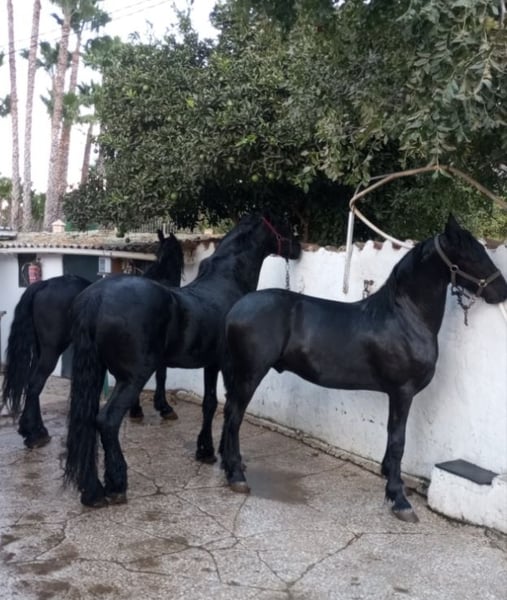 Hermoso semental frisón de 12 años de edad para la venta. Tiene papeles KFPS, 1,70 m linea genética de ORLIK 308 alta escuela con participaciones en competiciones de morfología muy noble ha sido montado, y es fácil de manejar Papeles oficiales de Holanda. Montado en alta escuela para clases superiores de doma, increíblemente dulce y cariñoso,apto para cualquier jinete novato o experimentado. Es muy noble con otros caballos ,nada de modales como semental, no hay problema ni siquiera al lado de las yeguas. Apto para la mayoría de los jinetes. Este impresionante semental impresiona por su elegante apariencia y su talentoso potencial para la doma. Está bien entrenado y listo para seguir brillando con su nuevo dueño. We speak English, If you want to know more, do not hesitate to ask.
