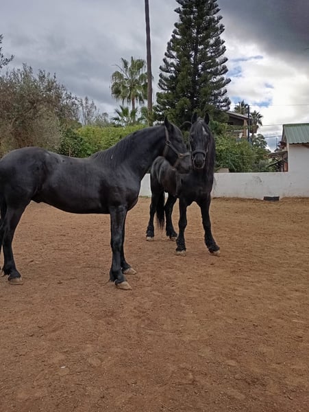 ¡Oportunidad de venta de un hermoso caballo Royal stallion Frisón! Se ofrece a la venta un magnífico semental Frisón, nacido en abril de 2024. De color negro intenso y con una alzada de 167 cm, este ejemplar destaca por su presencia imponente y su estructura completa. Ideal para quienes buscan un caballo noble de alta calidad, con excelentes características físicas y potencial para diversas disciplinas. Apto para competiciones y posibilidad de semental aprobado. No pierda la oportunidad de adquirir un semental con gran potencial y belleza. Para más información, no dude en contactarnos. Importante: el precio No es negociable.
