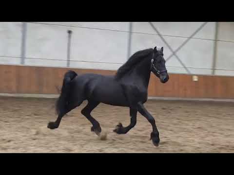 Deze stoere sterhengst is met zijn brede bouw en dikke hals een opvallende verschijning. Tidde is een paard met veel beweging voor de sport. Hij stapt met veel tact en ruimte, draaft met veel balans en techniek en galoppeert makkelijk en bergop. Tidde is goed gereden onder het zadel, hij heeft in de voorrijdagen van het KFPS gelopen en is dus gewend om op meerdere locaties te rijden. Tidde geeft een goed gevoel, is voorwaarts maar niet heet of rillerig en wilt graag werken. We denken dan ook dat deze stoere verschijning een plaatje in de wedstrijdring zal worden, maar daarnaast ook heerlijk een bos of strandrit kan gaan maken, een echte vriend voor het leven! Hij is röntgenologisch in orde bevonden. https://www.frysk-andaluz.com/nl/paard/tidde/