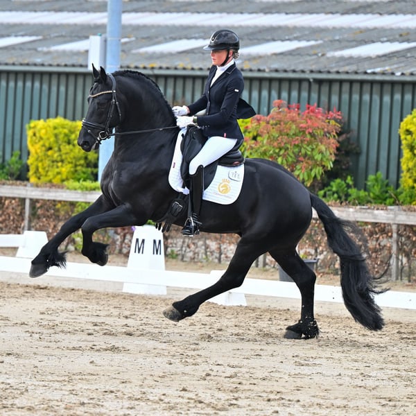 If you are looking for a very gentle, kind, and easy-to-ride sport horse, Oege from Cayenne Stables is truly exceptional. This Ster AAA stallion is among the best young Friesian sport horses of the moment, combining top-quality athleticism with a reliable and friendly temperament. He competes internationally for prizes and holds his own against warmblood dressage horses, demonstrating that he has all the qualities to continue progressing to a high level in dressage. Pedigree: Yme 507 x Beart 411 Breed and sex: Friesian stallion, Ster AAA Year of birth: 2019 Height: 165 cm (16.1 hh) Rider’s height in photo: 180 cm (5’11”) Location: Aalsmeer, Netherlands Studbook: KFPS Netherlands, Ster AAA Sport and Training Current level: Z2 Netherlands, S* Germany, Third Level USA In 2026, Oege will turn 6 years old and will compete in the FEI category for 6-year-olds, combined with participation in Z2 competitions. Training is focused on further refinement, strength development, and confirming his performances at national and international levels. Achievements - Champion of Friesian Dressage Horses - 6th place at the Dutch National Championships - IBOP score just under 90 percent - 4th place at CDI Tolbert Character Oege is exceptionally sweet, gentle, and trustworthy. He is very easy to ride, responsive to aids, and pleasant in daily handling. His work ethic and mental stability make him suitable for both professional riders and ambitious amateurs. In the arena, he demonstrates that he can consistently compete with top warmblood dressage horses. Health Clinically and fully radiologically approved, including legs, back, and neck. About Cayenne Stables At Cayenne Stables, we combine quality with personal attention and care for both horse and rider. We specialize in training, sales, and brokerage of high-quality dressage horses, with horse welfare always our top priority. We are not breeders and do not sell untrained horses or horses that have not yet reached an age-appropriate level of physical and mental development. Our horses are professionally guided over the long term by a dedicated team of trainers, veterinarians, farriers, and physiotherapists. Our advertisements aim to showcase our horses and our vision, not out of haste or necessity to sell, but based on trust in the right match at the right time. Contact: 📞 Mobile (call/WhatsApp): +31 6 81131407 | 📧 Email: info@cayennestables.nl 🌍 www.cayennestables.nl | 📸 instagram.com/cayennestables | 🌐 facebook.com/cayennestablesbv (EN) | 🇳🇱 facebook.com/cayennestables (NL)