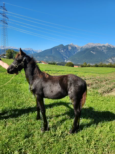 Friesenfohlen Fernando Geboren am 03.02.2025 Er hat einen sehr freundlichen und liebevollen Charakter. Mutter, Vater und auch seine Geschwister sind allesamt sehr angenehme und folgsame Pferde. Fernando lernt sehr leicht und ist natürlich noch verspielt. Huf heben, führen, Putzen, etc. funktionieren sehr gut. Er ist gehorsam und wird von Tag zu Tag mutiger. Er ist komplett schwarz und hat keine Abzeichen. Die Abstammung ist sehr gut. Allerdings ist die Mutter nicht im Stammbuch eingetragen. Er wurde regelmäßig entwurmt, ist gesund und von der Mutter entwöhnt. Beim Kauf ist der Pferdepass inkludiert und er wird auch noch gechipt. Selbstabholung - gegen Aufpreis/Anfrage kann Fernando aber auch in einem gewissen Radius zu Ihnen transportiert werden.