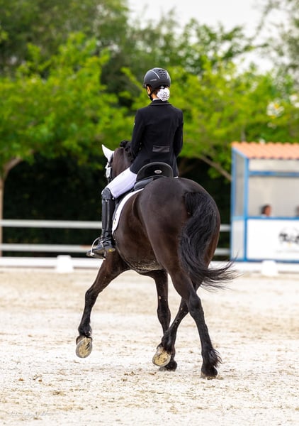 🖤 Carbonera 🖤 Race: Friesian horse Sex: Mare Year of Birth: 2010 Height: 16.1 hh Pedigree: She does not have purebred Friesian papers, but possesses the standard and national documents required for participation in the Spanish Championships. Level: 3+ Piaffe and Passage. Temperament: A calm and confident mare with a lively temperament. Suitable for: Children up to Juniors 0* or leisure riders. Health: No injuries. Additional Information: She has been three times Aragon Champion and last year achieved a top 15 placement at the Spanish Championships in the Junior class 0. 📍 Location: Zaragoza +34 176 401 7789