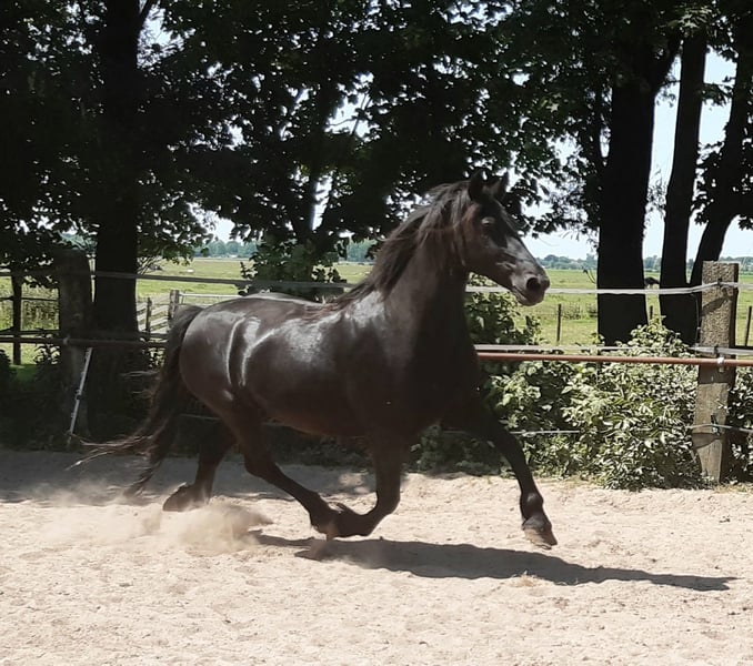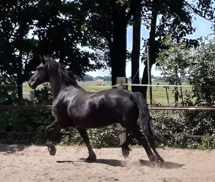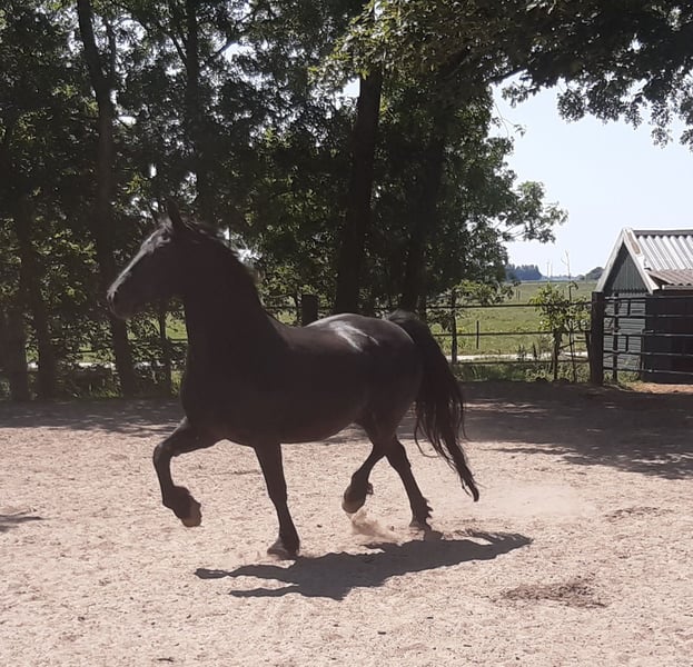 Bitte nur reagieren per Anruf oder Whatsapp. Email sehen wir leider nicht. Direkt vom Züchter ab zu geben: Sehr hübsche noch rohe Zuchtstute, wegen Bestandsreduzierung. Geboren 2008 etwa 1.62m gross, barock vom Typ und traumhaft schöne Gänge. Mit Equidenpass, kein KFPS Stammbuchpapier. Die Stute wird bei uns nur für die Zucht benutzt, ist hier geboren und hat mehrere wunderschöne Fohlen gebracht. Jeder Stutenherde hat bei uns ihre eigene Deckhengst. Wir züchten nur und trainieren nicht. Sie ist also noch komplett roh und noch nicht Halfterführig. Wenn sie ein Fohlen bei Fuss hat ist sie ihr Fohlen gegenüber sehr schützend. Sie läuft 24/7 beim Friesenhengst und kann deshalb tragend sein für nächstes Jahr. Wir züchten schon seit mehr als 30 Jahre Friesen, Barock Pintos und Friesenmix Pferde. Ab unserem Gestüt in die Niederlände haben wir viele wunderschöne Pferden zum Verkaufen. Alle noch komplett roh. Bei uns finden sie bestimmt ihrem Traumpferd. Unsere Pferden wachsen sehr natürlich auf in grossen Herden und sind deshalb sehr gut sozialisiert. Hier leben sie ein Traumpferdeleben: im Frühling und Sommer auf grosse Wiesen. Im Winter in grosse Gruppenstallen. Einen guten Charakter, cool im Kopf, stark, gesund und lieb sind für uns wichtige Voraussetzungen beim Züchten. Unsere Hengste können auf wünsch gelegt werden. Sie finden uns in der nähe von Leeuwarden. Kontakt: bitte nur per anruf oder Whatsapp.