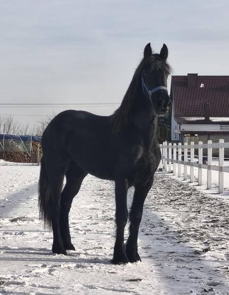 Witam, mam do sprzedania Piękną 1,5 roczną klacz Fryzyjską. Posiada paszport i rodowodu Holenderski ,,Główna Księga Stadna KFPS" To elegancka klacz fryzyjska o kruczoczarnej, lśniącej sierści i przyjaznym usposobieniu, oprócz pięknego wyglądu ma też przepiękny ruch w trzech chodach. Który wyróżnia ją na tle innych koni. To dobrze zapowiadającą się klacz która ma duże szanse zostać STER! Klacz jest nauczona prowadzania na uwiązie, podawania nóg i zabiegów pielęgnacyjnych. Jest codziennie padokowana z innymi konimi Zainteresowanym mogę wysłać filmy na Whatsapp. Zapraszam do kontaktu po więcej informacji po nr. tel. +48691277640