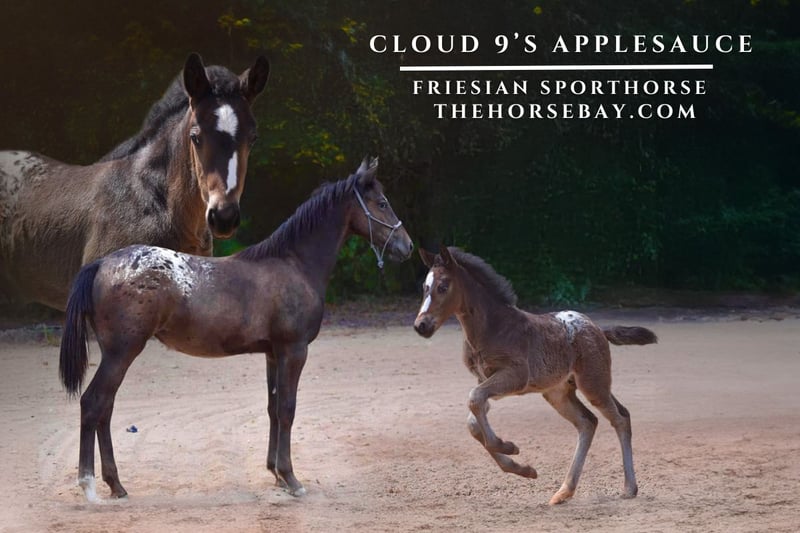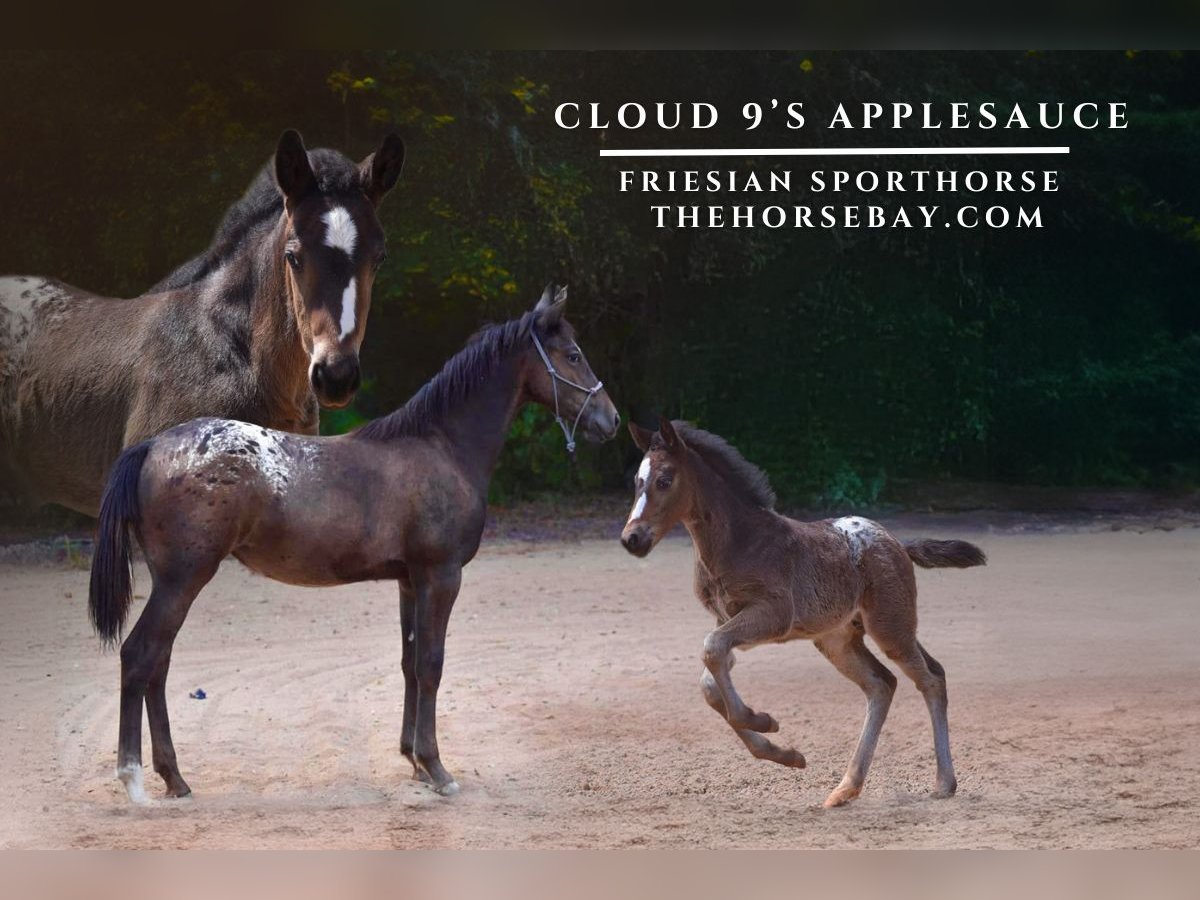 OPEN BIDDING ON THEHORSEBAY,COM. SALE ENDS ON 10/30 @ 3:20PM CT. More information is available on the website, including an UTD vet inspection, Coggins, video, images, and the owner's contact information to ask questions, request information, or make arrangements to come to visit. Cloud 9’s Applesauce “Apple” is a stunning Bay blanket Friesian Sporthorse Filly Born 03-03-2024 All paperwork was sent in, and she is waiting for her papers in the mail. Registered with the Friesian Sporthorse Association. She’s 25% Friesian, 25% AQHA and 50% Foundation ApHC Appaloosa. She has Stellar bloodlines packed with quality, great-minded horses. Talk about a good disposition. She’s Smart, Athletic, and Beautiful. Apple is 6 Panel N/N through parentage. She’s correctly built and will mature to approximately 15.1h and be stout. Her Sire and Dam are on-site, and I have tons of pictures and videos of them. She’s going to be a lovely all-around mare, very versatile like her parents, who compete in Dressage and Ranch Horse Events. She’s well-handled and sweet. Easy to catch, leads, loads, perfect for the farrier and vet. Great for a bath and fly spray. All basic baby manners and confidence with obstacles. She’s worn a bareback pad and has been ponied off of other horses. Super lovely, Filly. We’ve been raised from birth.