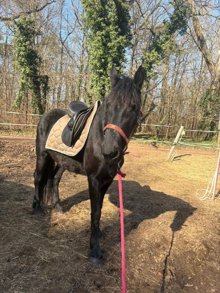 With a heavy heart, I am looking for a new home for my three-year-old Friesian mare. Xenia knows the basics of foal care and is raised in a mixed herd. She is very affectionate. In summer, she suffers from a mild sweet itch, which can be well managed with proper care. She is regularly dewormed and vaccinated (influenza, tetanus, and WNV). I am seeking a caring, responsible home—no dealers, please.