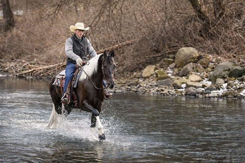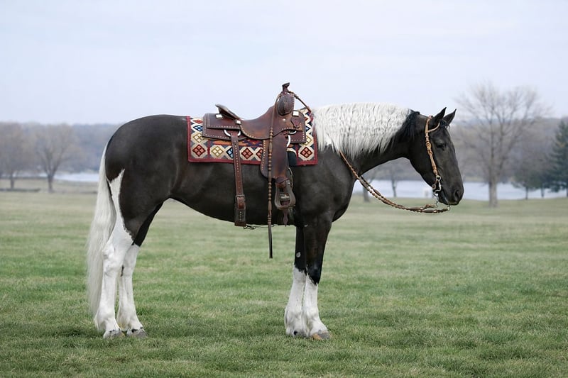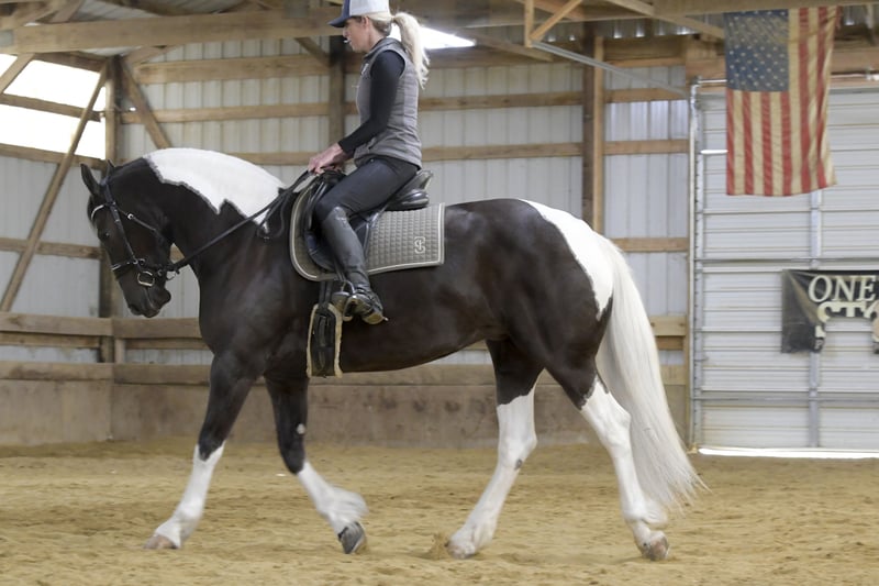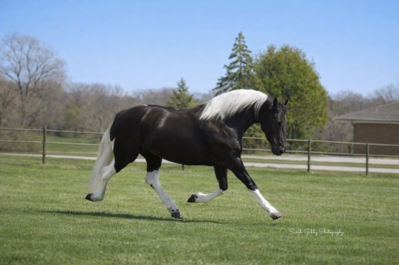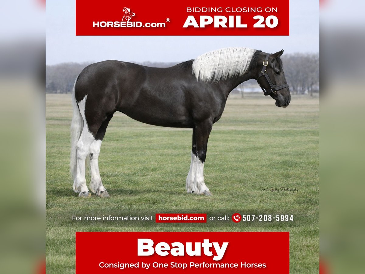 ⚜️𝐭𝐡𝐞 𝓔𝓵𝓲𝓽𝓮 𝐒𝐩𝐫𝐢𝐧𝐠 𝐂𝐥𝐚𝐬𝐬𝐢𝐜⚜️ Happening now thru MONDAY | APRIL 20th - Available EXCLUSIVELY on HorseBid's website! For more details and to register visit: www.Horsebid.com CONSIGNOR CONTACT: One Stop Performance Horses 507-208-5994 LOCATION: Oelwein, IA BREED: Friesian Sport Horse REGISTERED: Yes REGISTERED NAME: Beauty COLOR: Black & White HEIGHT: 15.2 AGE: 4 GENDER: Mare This mare is an absolute gem of a horse and her barn name, Beauty, matches not only her looks but her endearing personality. Breeder owned and raised, you can see the thought, time and care that has gone into her. She is sired by a Reg Friesian stallion and out of a Reg APHA mare, and is the epitome of what a sport horse should be. Standing right at 15.2hh with flawless conformation, striking color, and the perfect amount of bone and substance along with the prettiest kind eyes. This is one of those horses I cannot say enough about and honestly cannot fault her in any way. She is truly remarkable. Not only is Beauty still owned by her breeder, she has also been in consistent training with the same trainer for the past year developing a rock solid foundation under saddle both in and out of the arena. She is soft in the face and throughout her body. Will lope/canter right on cue, side passes, pivots, will ride on contact or stay consistent and level headed on a draped rein, and has a very correct and beautiful way of moving. Beauty is smooth, comfortable and very uncomplicated to ride. English, western, or bareback, and stays the same consistent reliable mount for any and all riders placed on her. She has logged countless miles outside the arena as well navigating trails, water crossings, quiet country roads or busy traffic in town or on the highways both on solo rides or in a group. And on top of all of that, she is also well broke to drive for anyone to take to town for a fun afternoon. This mare is an absolute joy in every way, and is a favorite for anyone who gets the opportunity to ride or drive her. On the ground Beauty is an absolute doll. The kind of horse that is a blessing to have in your barn. She is kind, quiet, patient, has phenomenal manners, and never causes a fuss in any way. She stalls beautifully, loads and hauls like a seasoned pro, cross ties, bathes, clips, and is great for the vet and farrier. Easy to turn out and blend with any herd, and great with all other horses whether riding in a crowded arena or on the ground in a crowded barn. She is just a joy in every way. Very easy keeper, always sound and healthy, requires no extra maintenance or special care of any kind. She is UTD on all cares including dental, farrier and coggins. She does have her registration paperwork currently in order with the Friesian Sport Horse registry that will either accompany her with her travels to her new home or be mailed should they arrive in the mail after the auction ends. Please be sure to watch her entire sale video. It shows her riding western, dressage, in a snaffle in a curb bit, by 4 different riders, including a 12yr old boy, carrying the flag, trails, driving, and bareback. Beauty is truly a rare find of a horse with a whole lifetime ahead of her and endless possibilities. **One Stop Performance Horses is acting as Seller’s Agent for the owner**