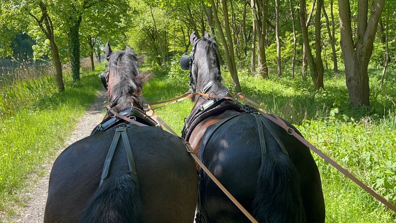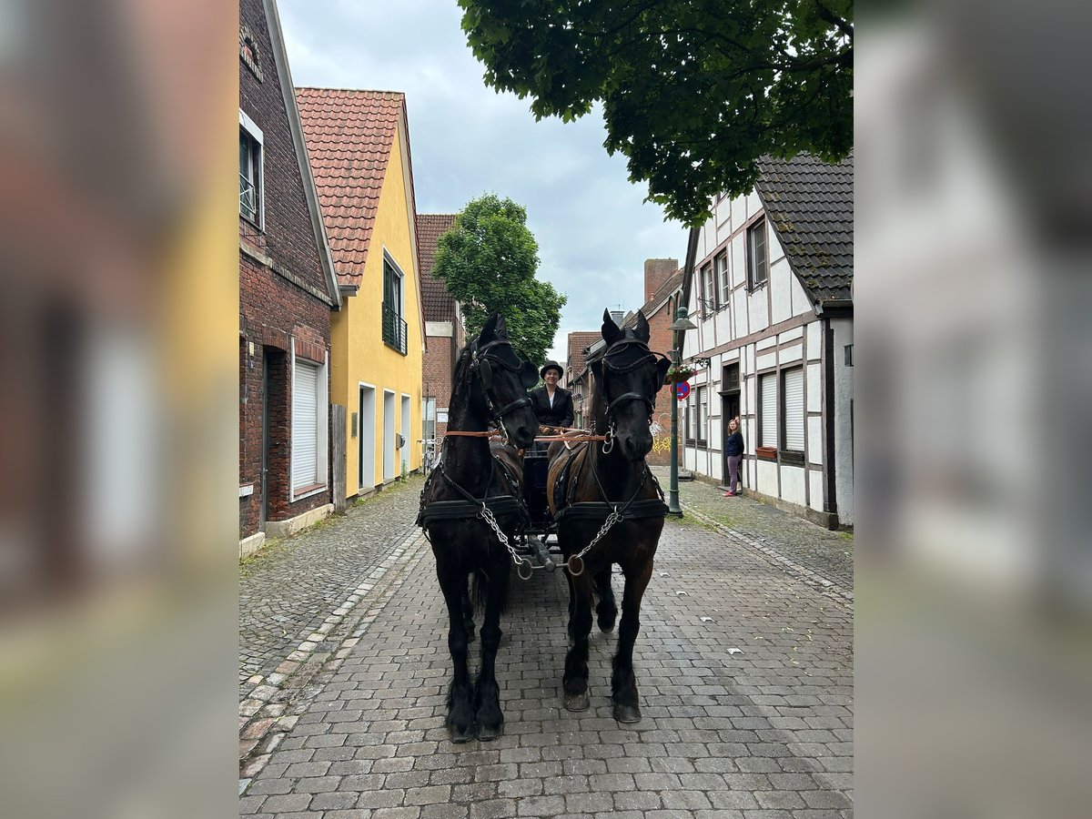 Brave Friesian gelding for sale. Driven single and double. Also ridden recreationally in the countryside. Very easy to handle when driving, suitable for beginners and children. He has already been driven at weddings and pilgrimages. Preferably to be sold with his partner in a double harness. A Friesian mare, also from 2005 and approximately 1.60m. Price for the pair is €8000 negotiable. For more information, please call, videos available upon request.