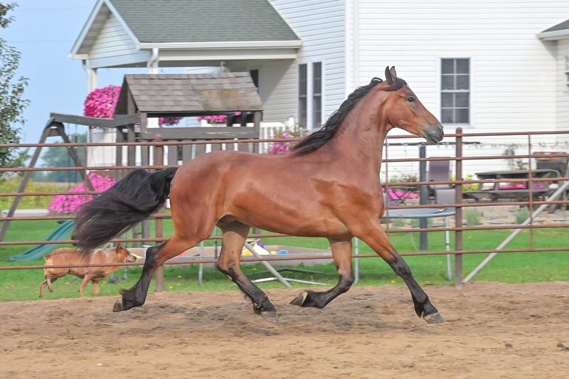 Licytacja online Złóż swoją ofertę na stronie www.PlatinumEquineAuction.com Minimalna cena wywoławcza 3500 USD Licytacja kończy się 2 listopada 2025 roku Potrzebujesz nowego siodła? Sprawdź ofertę White Rock Saddles na naszej stronie internetowej lub na Facebooku Donald to koniecznie trzeba zobaczyć, aby potwierdzić, dlaczego fryzyjskie konie od wieków są uważane za królewskie. To uosobienie elegancji i siły, gotowe do pokazów. Donald to 4-letni wałach fryzyjski z certyfikatem FBHR, o wzroście 16,2 hh, w rozmiarze 3 podeszwy i wadze około 635 kg. To znakomity kandydat na pokaz, mający wszelkie predyspozycje, by odnosić sukcesy w konkurencjach ujeżdżeniowych. Donald miał okazję zapoznać się z różnorodnymi widokami na szlakach, przeszkodami na arenie, a także z zgiełkiem życia w małym miasteczku. Jest w pełni zsocjalizowany i gotowy do dalszego szkolenia. Został już wstępnie wprowadzony do ujeżdżenia i wykazuje naturalny talent. Jego ruchy są tak piękne, że nawet osoby bez dużego doświadczenia z końmi dostrzegają jego niesamowity potencjał. Donald był wielokrotnie jeżdżony zarówno w siodle angielskim, jak i westernowym, posiada solidne podstawy szkolenia w obu dyscyplinach. Uważamy, że czyni go to bardziej wszechstronnym i adaptacyjnym partnerem jeździeckim. Jest energicznym, aktywnym koniem, z imponującym, wydłużonym kłusem. Uważamy, że najlepiej będzie się sprawdzał u jeźdźca na poziomie średniozaawansowanym lub zaawansowanym, albo w parze z trenerem. Donald może także doskonale sprawdzić się u początkującego dorosłego jeźdźca, przy wsparciu trenera. Jego ojcem jest Zebb M, czysto urodzony fryzyjski ogier, a matka to klacz sportowa, w 50% fryzyjska, co czyni tego pięknego wałacha w 75% fryzyjskim koniem. Niezależnie od preferowanej dyscypliny – ujeżdżenia czy westernu – wierzymy, że Donald odniesie sukcesy zarówno w dressage, jak i western dressage. Przy odpowiednim szkoleniu może także rywalizować w skokach, eventing czy w konkurencji jazdy klasycznej. Donald dobrze radzi sobie w ruchu w ruchu ulicznym, nie boi się hałasu i zgiełku małego miasta. Bez problemu przechodzi przez wodę, z gracją pokonuje przeszkody, takie jak kłody czy powalone drzewa na szlaku. Był jeżdżony w otwartym i zamkniętym terenie, wśród dużych i małych zwierząt gospodarskich oraz drobiu, a także miał kontakt z dziką fauną na polach i szlakach. W arenie jeździ pewnie zarówno w hali, jak i na zewnątrz, z dużą pewnością siebie. Posiada imponującą zwinność i łatwo dostosowuje się do różnych rodzajów podłoża. Za każdym razem, gdy wsiadasz na niego, możesz oczekiwać tej samej, równej jazdy, ponieważ Donald jest bardzo konsekwentny, nawet po dłuższej przerwie. Jest uczciwy i nie ma obaw o szarpanie, skoki czy kopnięcia, nawet gdy jest w pełni energii. Jest dobrze wychowany i zachowuje się świetnie zarówno na padoku, jak i w stajni. Przy wypuszczeniu na pastwisko dobrze dogaduje się z innymi koniami i łatwo go złapać. Donald stoi spokojnie na uwiązie, na krzyżaku, jest uprzejmy dla kowala i weterynarza, łatwo go przyzwyczaić do czyszczenia i strzyżenia, a także idealnie stoi do siodłania. Spokojnie stoi podczas zakładania siodła, na ochraniaczach polo, a także przy podnóżku. Chętnie porozmawiam z Tobą lub Twoim trenerem, aby upewnić się, że Donald będzie idealnym partnerem dla Ciebie. Sprzedaję go z aktualnym negatywnym wynikiem testu cogginsa oraz badaniem przed zakupem wykonanym przez mojego weterynarza. Jeśli chcesz się spotkać z Donaldem lub masz pytania przed zakończeniem licytacji, proszę o kontakt z Edwinem Raberem pod numerem 319-283-0616. Lokalizacja: Fairbank, Iowa.