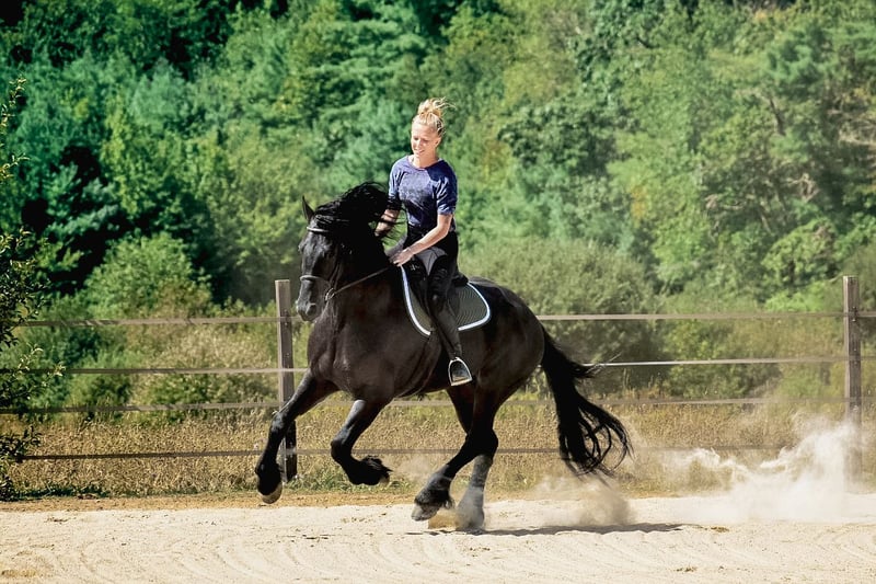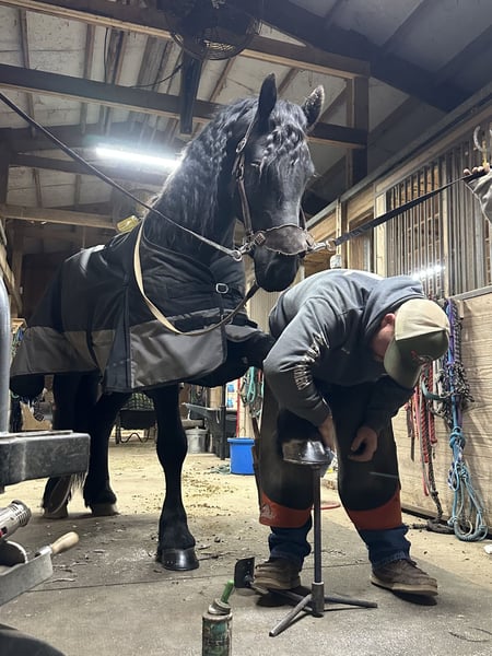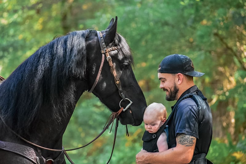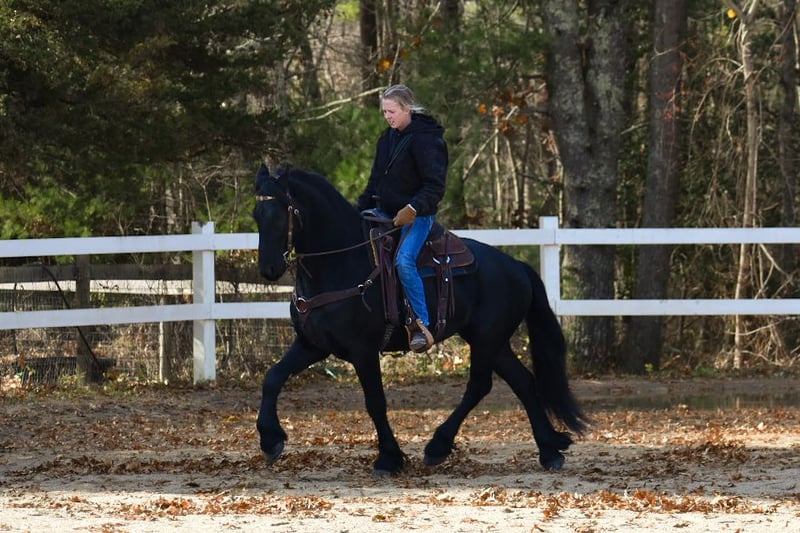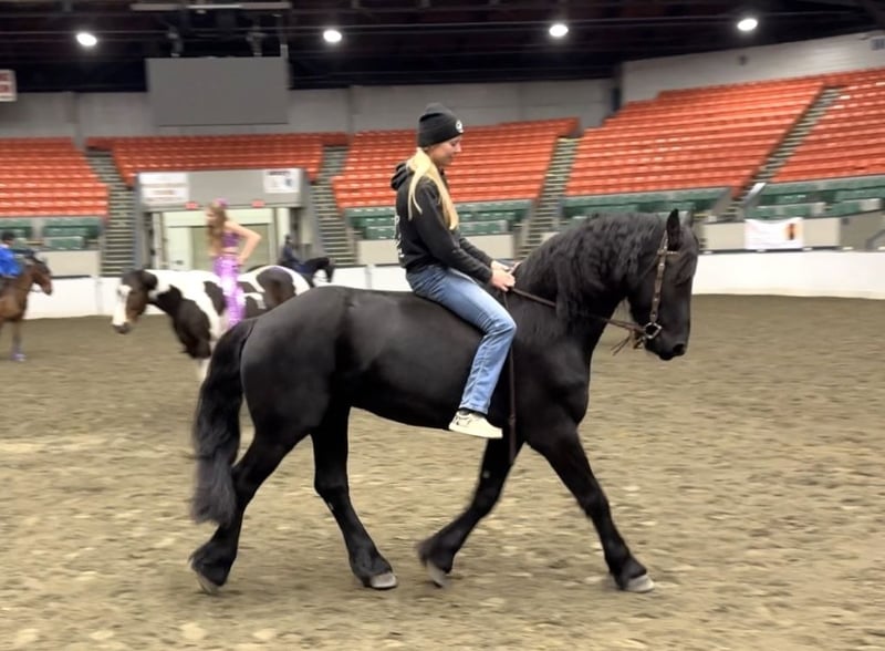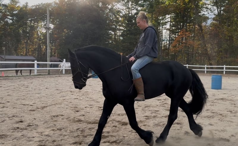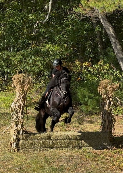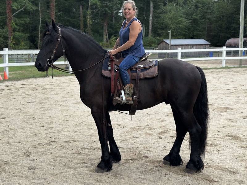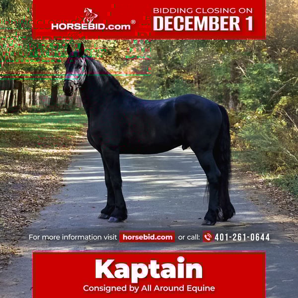 ⚜️ 𝓽𝓱𝓮 𝐇𝐨𝐫𝐬𝐞𝐦𝐚𝐧'𝐬 𝓢𝓱𝓸𝔀𝓬𝓪𝓼𝓮⚜️ Happening now thru MONDAY | DECEMBER 1st - Available EXCLUSIVELY on HorseBid's website! For more details and to register visit: www.Horsebid.com CONSIGNOR CONTACT: All Around Equine 401-261-0644 LOCATION: Rochester, MA BREED: Friesian Sport Horse REGISTERED: Yes REGISTERED NAME: Kaptain Pierce COLOR: Black HEIGHT: 16.2 AGE: 4 GENDER: Gelding ⚔️ Kaptain Pierce ⚔️ Registered 87.5% Friesian - 6.25% Morgan - 6.25% Percheron Ready to meet the most incredible horse I have ever had the pleasure of offering for sale?! Meet Kaptain.. He is just as, if not more stunning in person than any picture could capture of him. Everywhere he goes, he turns heads with his presence and kind demeanor. I’ve never met a horse quite like him! One minute, he can be working and putting every ounce of effort into his ride with me. And the next, he will be nuzzling my 8 month old son with kindness and quietness you just can’t train into one. Sometimes, they just have it. And Kaptain has it. Kaptain and I have done so much together! Countless arena rides, having fun playing with dressage/western/huntseat/bareback. Miles and miles of trails together. Hunter paces, off property adventures, and hours and hours of grooming and loving on him! If there is one thing for certain about this sweet, young horse it is that he tries with his all every time you step foot in that stirrup! He is not a hot ride and will go at whatever pace you pick. I have had every single level of rider on him and he adjusts and takes care of EVERYONE that has sat on his back. You will be smiling once you step off of him! The possibilities are truly endless for Kaptain. Pick your discipline and climb to the top with him. Or… Be like me! And take him to a hunter pace one day and a cow sort the next. He is game for whatever you point his nose towards. In water, over bridges (even the teeter totter bridge! He loves it!), across open fields, down the road, you name it and Kaptain has done it and will do it happily! Recently, we participated in the Massachusetts Equine Affaire! This horse blew me away at this extremely busy event. He was BRAVE, gentle and the same exact horse as he is at home in one of the most hectic environments. He trotted right into the daunting coliseum and strutted his stuff in front of hundreds of people. I was more nervous than he was, and he took care of me the entire time! He is the quietest horse to trailer, he hops right on and you can’t feel him the entire ride. Settles right in to a new place with zero anxiety or issue. Super easy keeper, 0 maintenance, beautiful hoof (he wears front shoes because we trail ride so often), big solid bone… and of course that HAIR 🤩. Kaptain has NO buck bolt or rear. He W/T/C both directions, responds extremely well to leg pressure, you can ride him with or without spurs, is soft in the bridle and has jumped small jumps (very minimally, as he is young) bravely! He would thrive in so many disciplines I truly couldn’t list them all. He loves a bath, clips, ties to anything, loves the farrier and vet.. ETC. He sounds too good to be true, but this horse has proven himself to me time and time again. He really is one in a million.