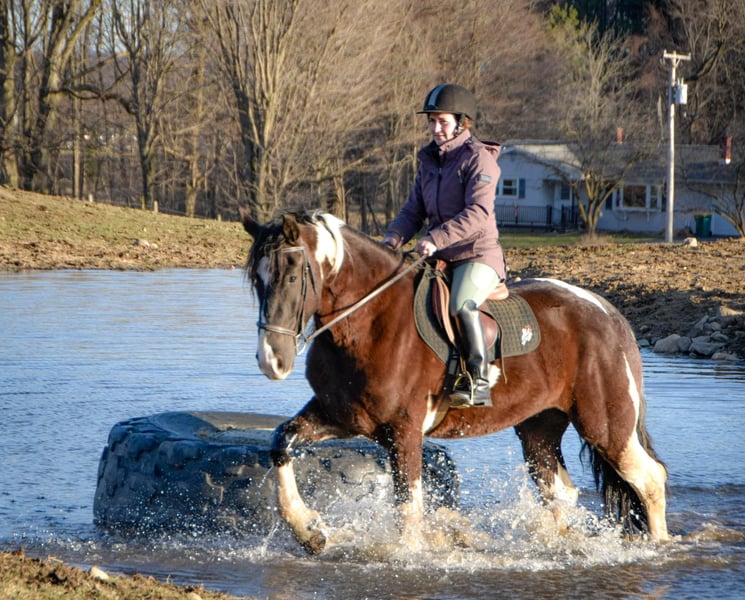 ONLINE AUCTION Place your bids at www.PlatinumEquineAuction.com Starting Bid $3500 Auction ends April 20th, 2025 Need a new saddle? Check out White Rock Saddles on our website or Facebook! O Romeo, Romeo! Here is a 4-year-old draft cross gelding, standing at an impressive 16.3 hands tall. This horse has unlimited potential and is ready to find his forever person. He is a Friesian/ spotted draft cross. This stunning gelding is indeed the whole package from head to toe! Romeo has excellent conformation, clean legs, big bones, and nice big hooves. He has a clean PPE and is ready for his next adventure in life. Romeo is a delight to work on and be around. He stands quietly for the vet and farrier and does not require stocks. He will stand patiently tied while you brush and saddle him up. Romeo loads easily and rides calmly in the trailer; he unloads quietly and is ready to work. He is easy to bathe and pamper and is content in a stall or turned out to pasture. Under saddle, Romeo is a very uncomplicated ride. He is soft laterally, has an excellent “whoa,” moves off your leg nicely, and has a nice back, side passes, and spins. Kids, teens, and adults have ridden him, and they all enjoy him; he can take a joke and will try anything you ask! He recently went to Equifest, where a youth rode him in an opening ceremony carrying a flag. We have been riding him both English and Western and have found he is versatile and happy in both disciplines. He is quiet and confident on the trail and will go anywhere you point him. He easily navigates rough terrain up and down grades, through water, over downed trees, and trailblazing through the woods. He has been exposed to cows, dogs, goats and sheep. He recently went on a week-long trail-riding camping trip to Kansas and loved it. Romeo will trot poles and take a jump with ease. Don’t feel like riding? Then take him for a drive! Romeo hooks quietly and drives off calmly. I believe this gelding would make an excellent mount for anyone looking for a quiet and simple horse to take from the arena to out on the trail and even into the show pen; his willing mind and calm demeanor make him a super adaptable and easy horse to get along with no matter the level of rider/handler. He sells sound without vices or limitations. We are located in Warsaw, NY. Contact Dayton Wolcott for more information 585-734-0169 ONLINE AUCTION Place your bids at www.PlatinumEquineAuction.com Starting Bid $3500 Auction ends April 20th, 2025 Need a new saddle? Check out White Rock Saddles on our website or Facebook!