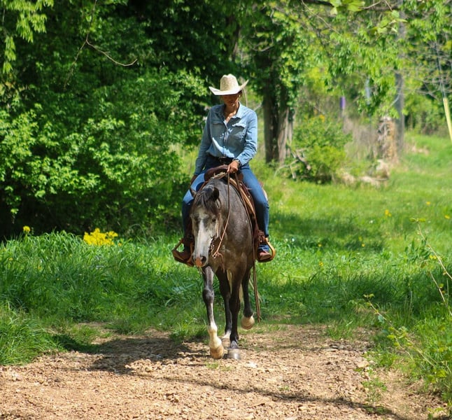 ▪️▫️◾️𝐭𝐡𝐞 𝑴𝒂𝒚 𝐒𝐞𝐥𝐞𝐜𝐭◾️▫️▪️ Happening now thru MONDAY | MAY 4th - Available EXCLUSIVELY on HorseBid's website! For more details and to register visit: www.Horsebid.com CONSIGNOR CONTACT: A&A Farms 815-674-1026 LOCATION: Hardinsburg, IN BREED: Friesian Quarter Horse Cross REGISTERED: No REGISTERED NAME: Mister COLOR: Dapple Grey HEIGHT: 15.3h AGE: 5 GENDER: Gelding Anyone looking for a simple, straightforward young horse with a fantastic brain needs to check out Mister! He’s the kind you can pull out of the stall, tack up, step on, and ride off with no prep, no stress, or worry. ‘Mister’ is a 2021 Friesian Quarter Horse cross gelding standing 15.3h. Mister rides well beyond his years inside the arena demonstrating a good neck rein, easy transitions, great cadence, and a solid stop. He rides off your seat and leg very easily - when using him in lessons, I tell students ‘point your hips where you want to go, and that’s where he will go’. Mister rides well under Western and English tack. He is an expressive fancy mover with good raw extension and suspension that dressage riders would appreciate. Mister is confident to ride out on the trail by himself. He confidently crosses water, logs, and easily navigates steep banks and ditches. In a group, he prefers to lead the pack but will follow another horse without hassle. Mister is not an inherently ‘spooky’ horse. When he does see something he is unsure of, he is a ‘plant in place’ type of horse rather than an explosive turn and run kind of guy. Mister is an easy and kind horse to have in the barn. He has good stall manners, is respectful on the ground, patiently stands tied to be groomed and tacked, and stands well to be bathed. He also gets along well with others in his turnout group. He currently turns out in a two acre pasture with one other gelding and two mares. He’s not mean or aggressive with them in the slightest. One of our favorite things about Mister is his fantastic mind, and willingness to learn. He is incredibly easy and fun to work with. He picks up on new concepts quickly and easily. Interested in a great minded, broke, beautiful, horse you can enjoy for a long time? Reach out to us for more info and to set up a time to meet Mister!