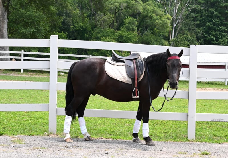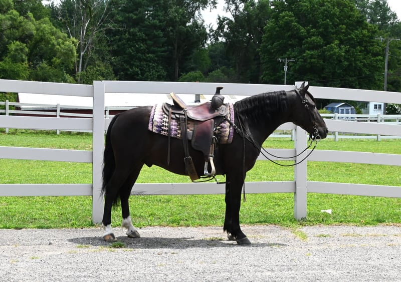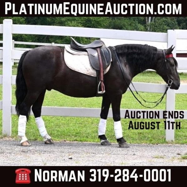 ONLINE AUCTION Place your bids at www.PlatinumEquineAuction.com Starting Bid $3500 Auction ends August 11th, 2024 Need a new saddle? Check out White Rock Saddles on our website or Facebook! Meet Barney! Barney is a 13.2H, 2020 model, black friesian cross. He is a one of a kind pony that is a barn favorite that never disappoints. He is broke to ride the very best and also drives single and double. He rides english, western or bareback. He will go anywhere that you point him and has been down busy highways with fast traffic and is also great on trails. He will cross ditches, creeks, deadfall and scales steep slopes. He is easy to catch, tack up, handle his feet, loves a bath and is farrier friendly. He will walk, trot and canter very easily, is smooth at all speeds and takes the correct leads. Barney is one that the whole family can ride and enjoy. He has more whoa than go and will take care of any age of rider, young or old. He is up to date on coggins, worming and rabies vacs. He sells sound. If you have any questions call Silver Star Stables Norman 319-284-0001. Located in Sturgis, MI. ONLINE AUCTION Place your bids at www.PlatinumEquineAuction.com Starting Bid $3500 Auction ends August 11th, 2024 Need a new saddle? Check out White Rock Saddles on our website or Facebook!