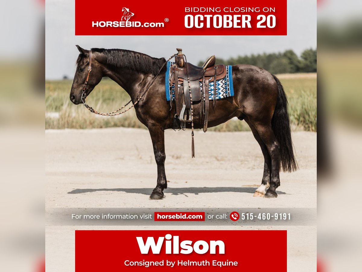 ♦️ 𝐭𝐡𝐞 𝐀𝐌𝐄𝐑𝐈𝐂𝐀𝐍 𝓕𝓪𝓵𝓵 𝓒𝓵𝓪𝓼𝓼𝓲𝓬 ♦️ Happening now thru MONDAY | OCTOBER 20th - Available EXCLUSIVELY on HorseBid's website! For more details and to register visit: www.Horsebid.com CONSIGNOR CONTACT: Helmuth Equine 515-460-9191 LOCATION: Ames, IA BREED: Friesian/Standardbred REGISTERED: No COLOR: Black HEIGHT: 16 AGE: 5 GENDER: Gelding Meet Wilson, a 5 year old, 16+ hand Friesian/Standardbred cross gelding. Wilson is a truly unique individual. He rides western on trails extremely well, he’ll lead or follow and is super brave and confident, making him suitable for any level of rider to enjoy out on the trail. We’ve taken Wilson to numerous XC schoolings, and he’s a real point and shoot type. As long as you have your connection right with him, he’ll take any jump, no matter how technical it is. He’s also been to several dressage shows, where he scored between 67% and 69% in T3 during his first summer out. Wilson drives exceptionally well in any form, whether it’s hooking a young horse beside him, driving in the wheel of a four in hand, or going single. He truly does it all. He has the talent, movement, and brain to easily progress up the levels in combined driving. He has a great canter and isn’t complicated. Yes, Wilson has a big motor and a touch of spice, just enough to give him that endless work ethic needed to excel in any discipline. Wilson has absolutely no vices whatsoever and no issues with his living situation. He’s an easy keeper, easygoing, and gets along well living outside with other horses or inside the barn. You can ride him every day or once a month and he’s always happy to go to work. Wilson would be ideally suited for a confident amateur or in a program. With his talent, the possibilities are endless on how far he can go.