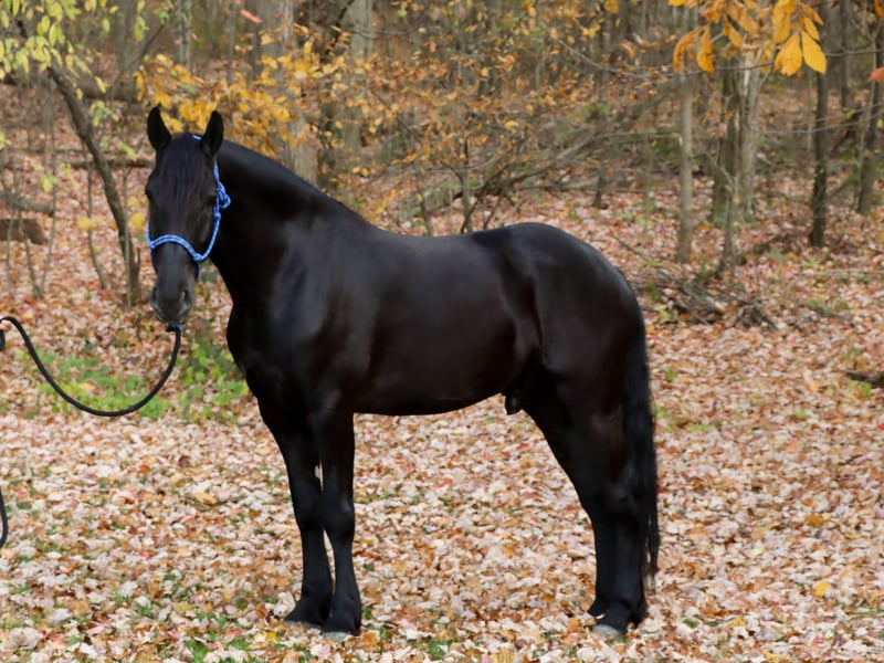 ⚜️𝐓𝐇𝐄 𝐅𝐀𝐋𝐋 𝐇𝐄𝐑𝐈𝐓𝐀𝐆𝐄 𝐂𝐋𝐀𝐒𝐒𝐈𝐂⚜️ Happening now thru MONDAY | NOVEMBER 3rd - Available EXCLUSIVELY on HorseBid's website! For more details and to register visit: www.Horsebid.com CONSIGNOR CONTACT: Hershberger Family Equine 330-600-8242 LOCATION: Sugarcreek, OH BREED: Friesian Sporthorse REGISTERED: Yes REGISTERED NAME: A-J'S Ace COLOR: Black HEIGHT: 15.3 AGE: 6 GENDER: Gelding If your looking for your very own plack beauty here is your guy!! Ace is 6yr. Old registered FSHR gelding. Standing at 15.3 hand tall. Ace is a true gentleman quiet, willing to please, safe and handsome. He has been with our family for the last 3 1/2yrs. He's been ridden western, English, bareback and brideless. He side pass to easily open and close gates. My 10 yr old and 6yr old kids get him out and rides him by themself. My kids will spend hrs playing with him from riding double, running around him chasing each other or simply enjoying a big horse they can canter around. He will walk, trot, canter and pick up both leads. Ace is easy to catch in the pasture, gets along well with others and is easy to Keep inside or outside. He stands great for the farrier, tacking up, grooming and baths. He will load on a taiter. Ace can be ridden in in groups, alone, on the road, open field, trails or arena. He has been ridden on Camping trips, in the dark and does well with a buddy seat.He will cross water, logs and conquers rough terrain with ease. Ace also does well in the carriage, been driven on State roads, through town and does great in traffic. He is up to date or on vaccine and dewormer. If Ace Sounds like the perfect fit for you, but you want to try him in person before contact Joanna to schedule a visit. You can also do a PPE if that is something you want to do.